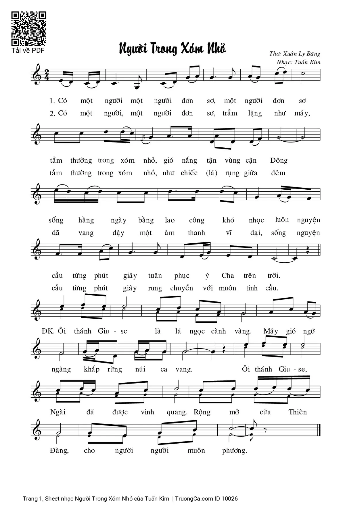 1/ Có một người, một người đơn sơ, một người đơn sơ tầm thường trong xóm nhỏ, gió nắng tận vùng cận Đông. Sống hằng ngày bằng lao công khó nhọc, luôn nguyện cầu từng phút giây tuân phục ý Cha trên trời.