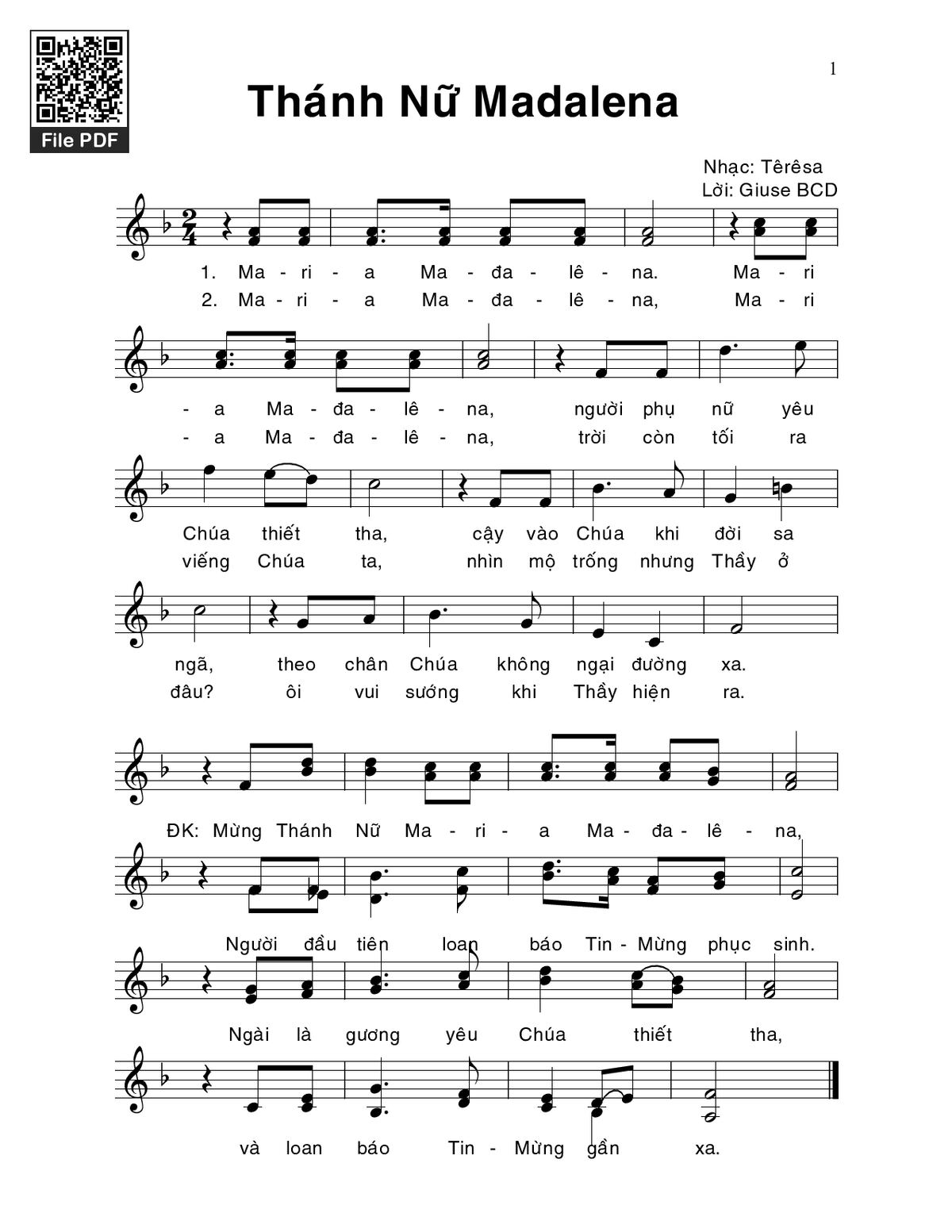 Các sheet PDF tương tự Thánh Nữ Mađalêna: