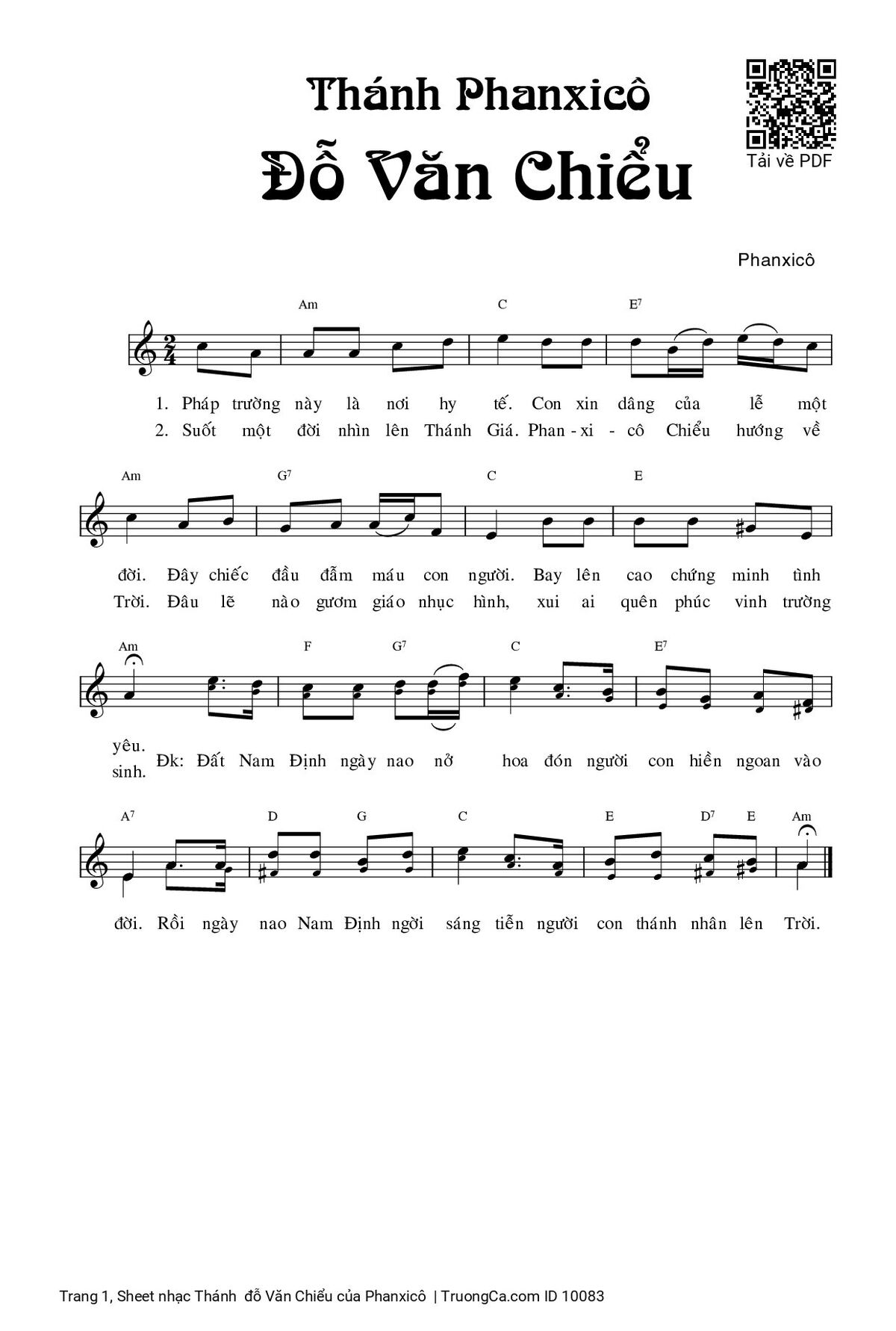 Các sheet PDF tương tự Thánh đỗ Văn Chiểu: