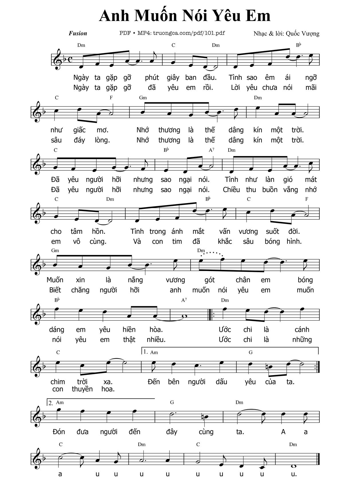 Quốc Vượng Ngày ta gặp gỡ phút giây ban đầu Tình sao êm ái ngỡ như giấc mơ [PDF] [Sheet] [Lời H.A] [Mp4/Midi]