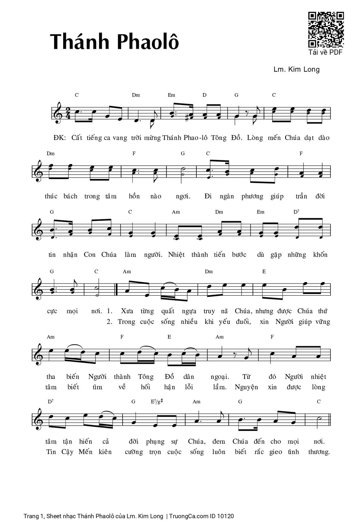 Chọn nút dấu + để tăng tông lên nửa cung, nút dấu - để giảm tông xuống nửa cung. Rê chuột vào hợp âm để xem các thế bấm hợp âm của bài hát Thánh Phaolô.
