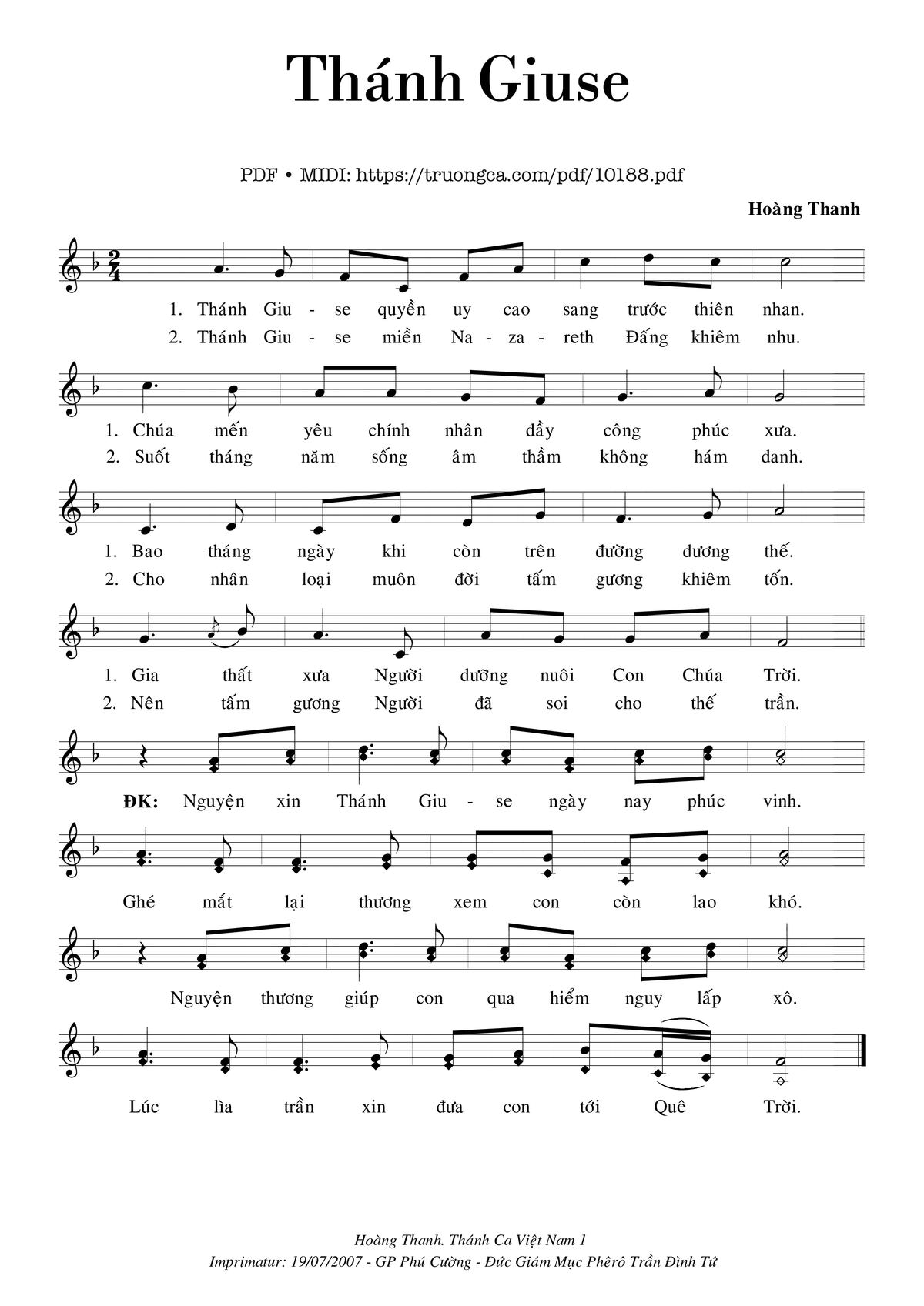 Hoàng Thanh Thánh Giuse quyền uy cao sáng trước thiên nhan [PDF] [Sheet] [Lời H.A] [Mp4/Midi]