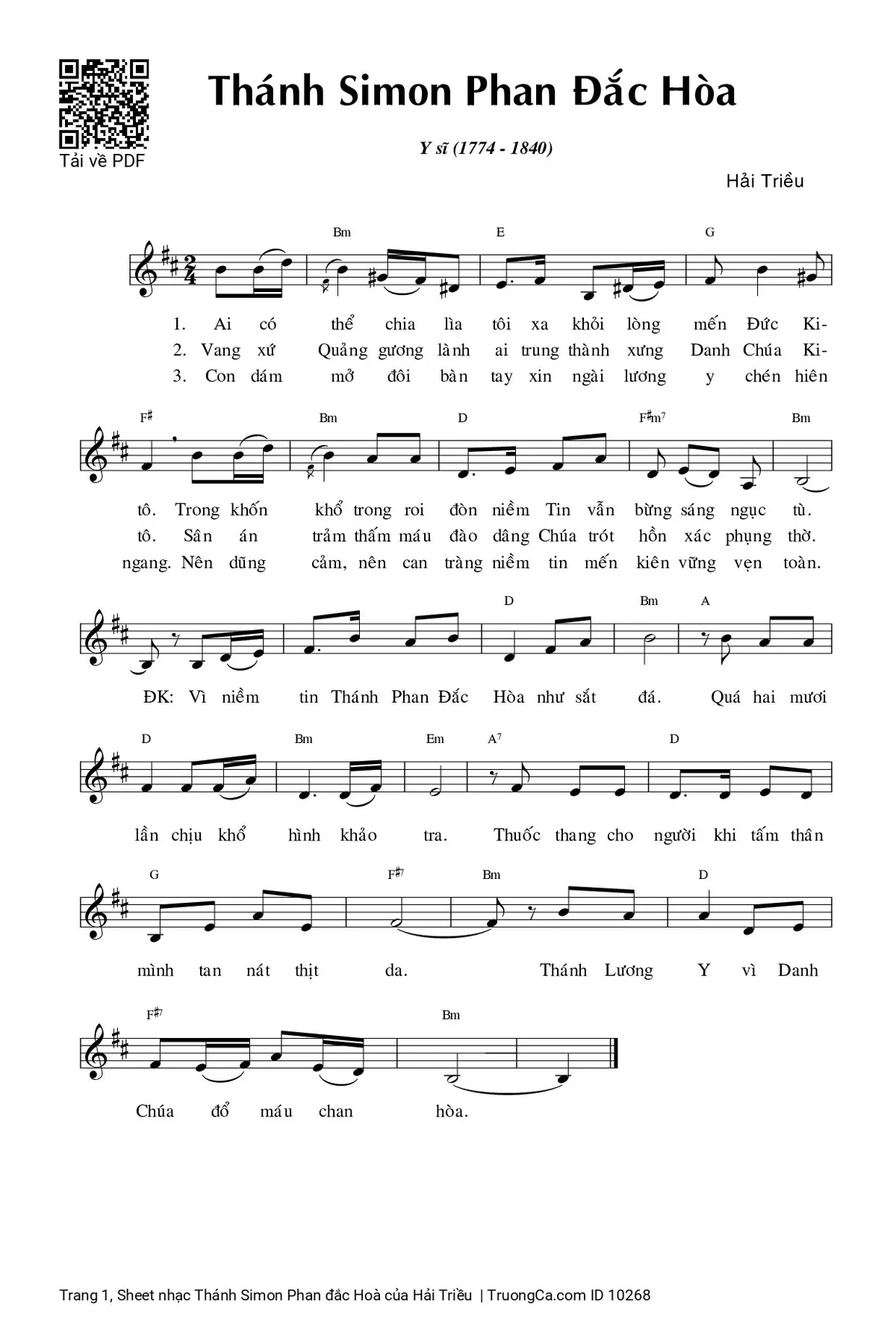 Các sheet PDF tương tự Thánh Simon Phan đắc Hoà: