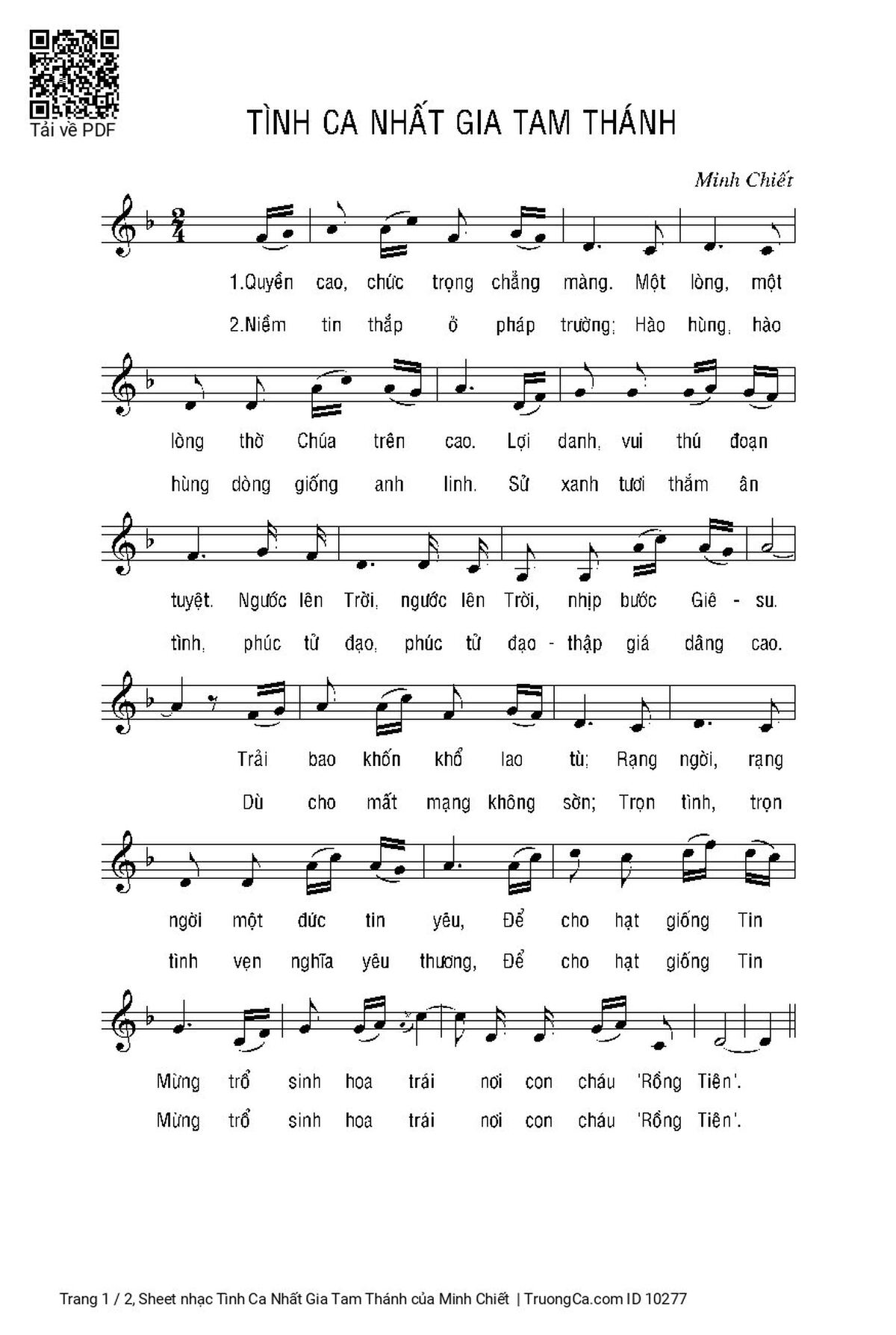 2. Niềm tin thắp ở pháp trường; Hào hùng, hào hùng dòng giống anh linh. Sử xanh tươi thắm ân tình, phúc tử đạo, phúc tử đạo-thập giá dâng cao. Dù cho mất mạng không sờn; Trọn tình, trọn tình vẹn nghĩa yêu thương, Để cho hạt giống Tin Mừng trổ sinh hoa trái nơi con cháu "Rồng Tiên"