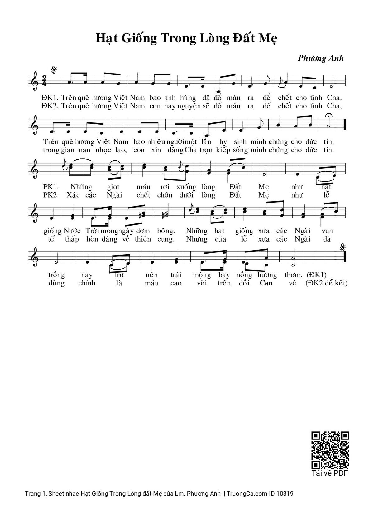 Điệp khúc1. Trên quê hương Việt Nam bao anh hùng đã đổ máu ra để chết cho tình Cha, trên quê hương Việt Nam bao nhiêu người một lần hy sinh minh chứng cho đức tin.