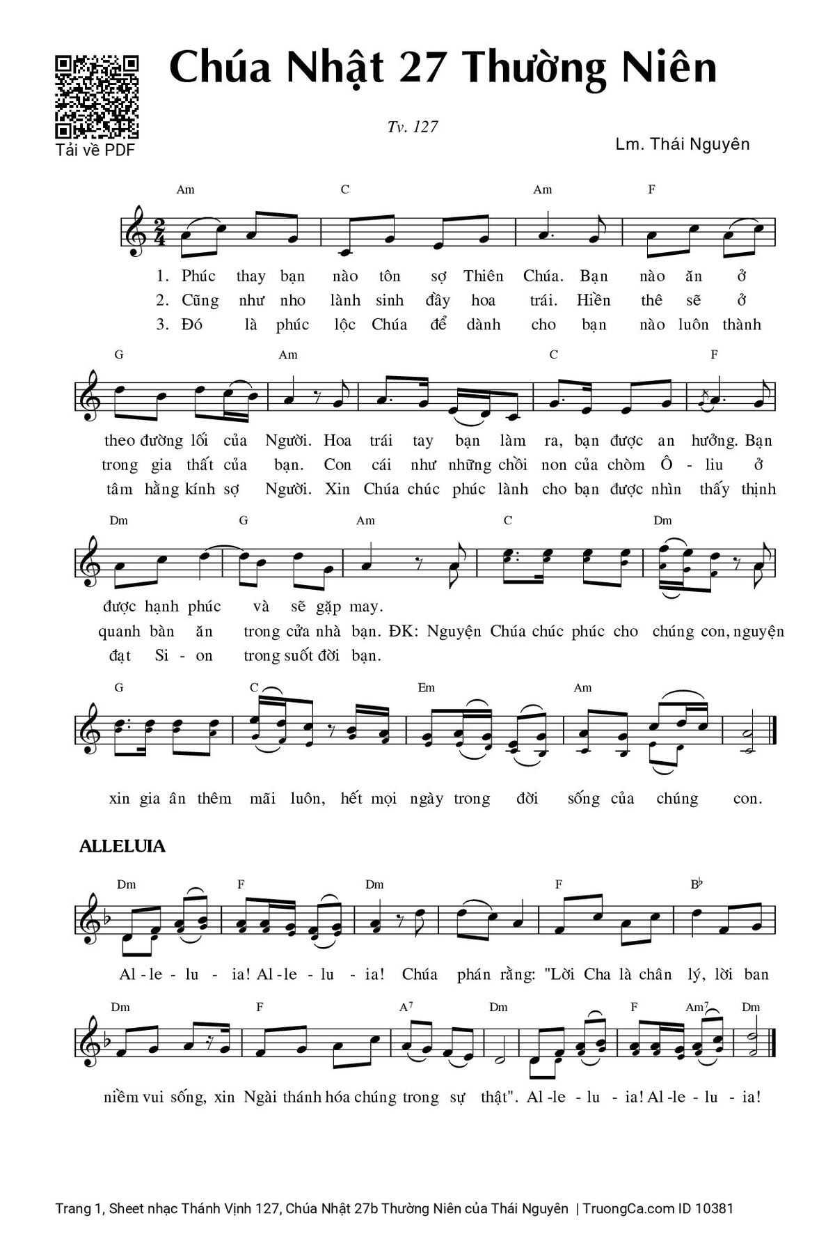 Thái Nguyên Phúc thay bạn nào tôn sợ Thiên Chúa Bạn nào ăn ở theo đường lối của Người [PDF] [Sheet] [Lời H.A] [Mp4/Midi]
