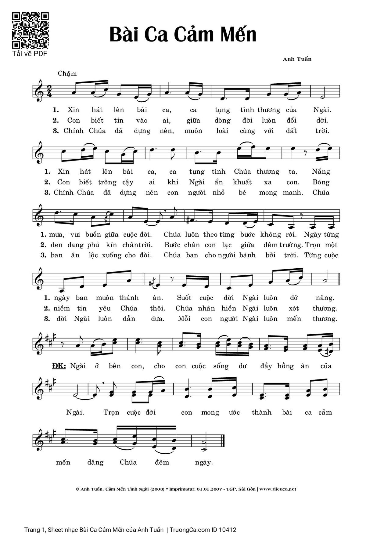 Anh Tuấn Xin hát lên bài ca ca tụng tình thương của Ngài [PDF] [Sheet] [Lời H.A] [Mp4/Midi]