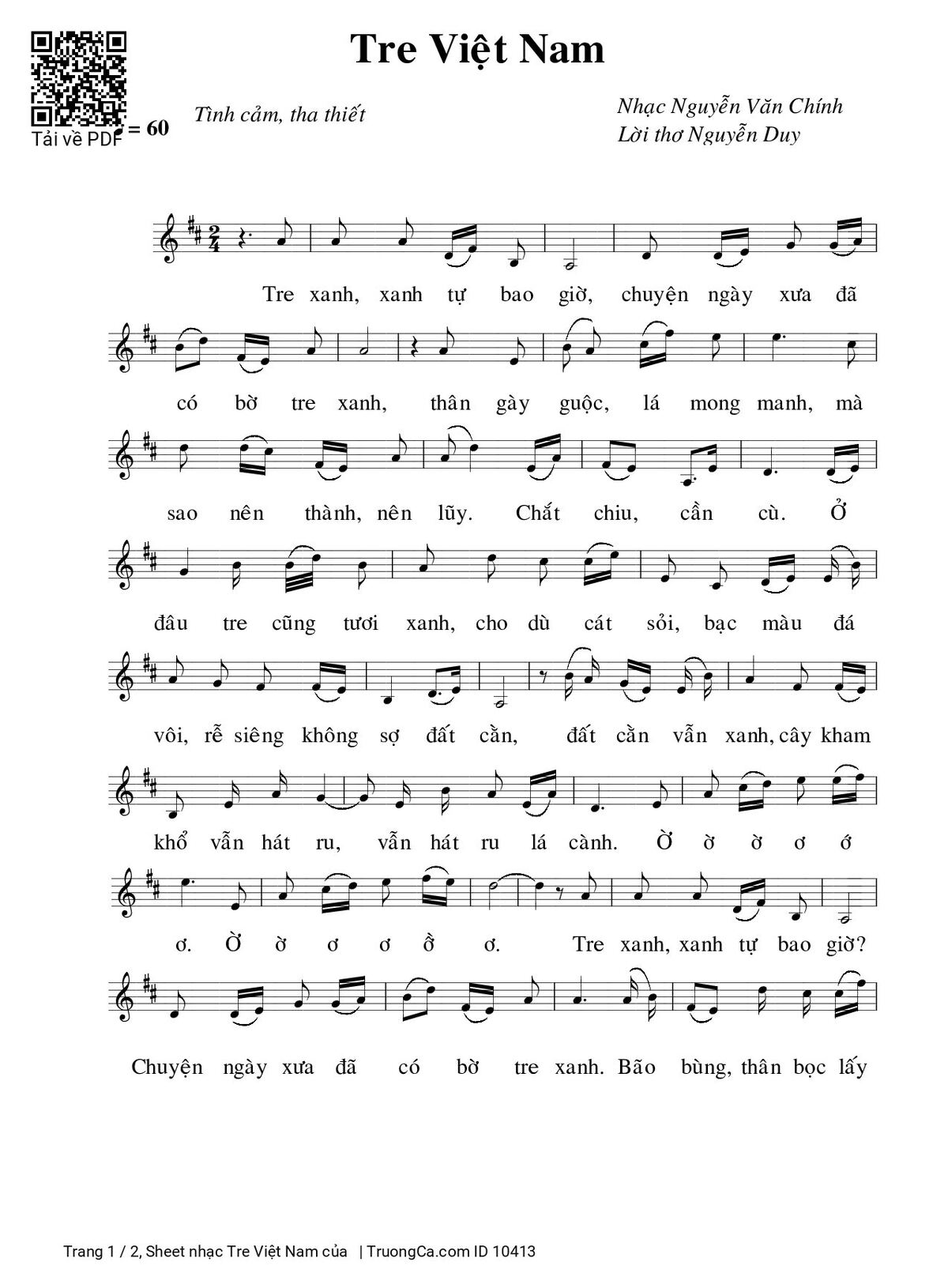 Trang 1 của Sheet nhạc PDF bài hát Tre Việt Nam -