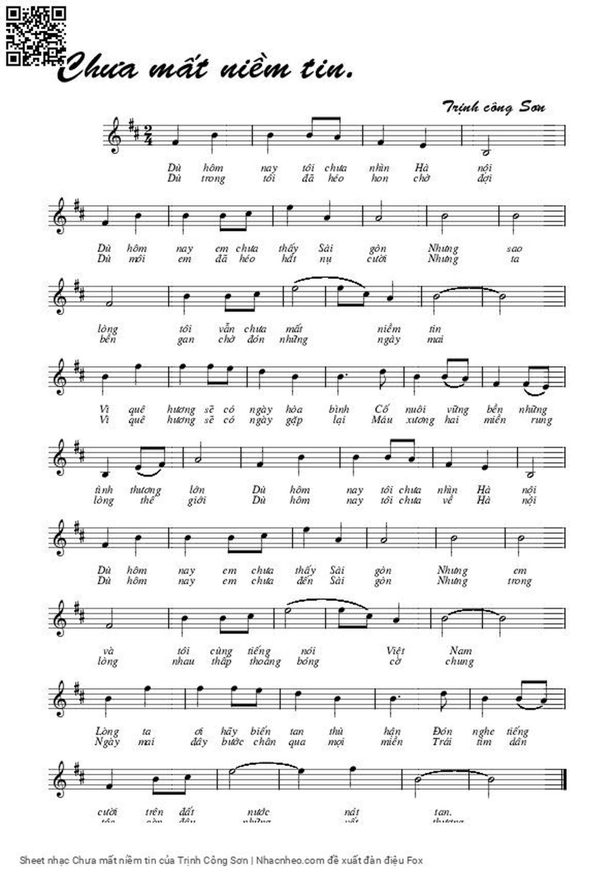 Trịnh Công Sơn Dù hôm nay tôi chưa nhìn Hà Nội Dù hôm nay em chưa thấy Sài Gòn [PDF] [Sheet] [Lời H.A] [Mp4/Midi]