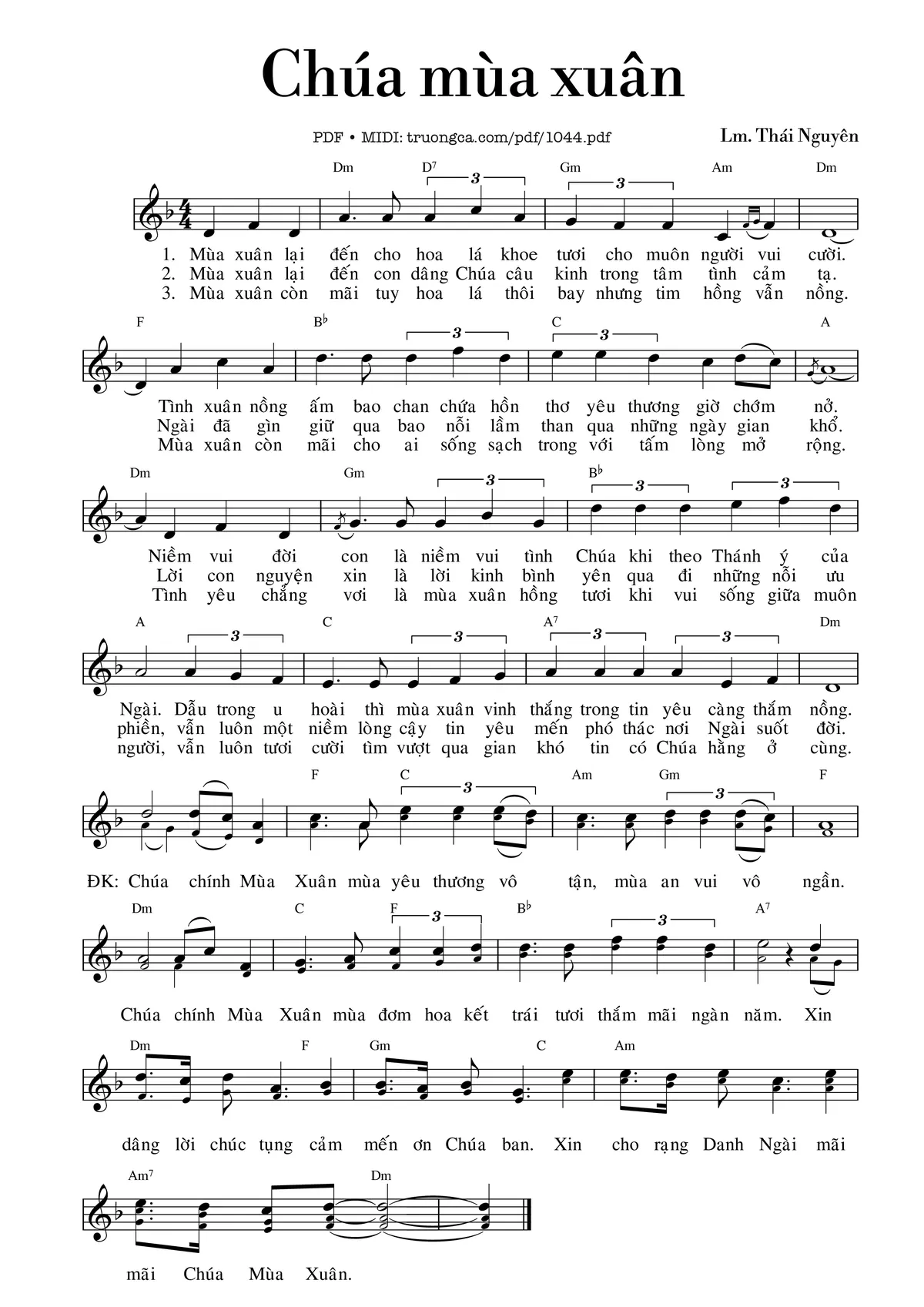 Lm. Thái Nguyên Mùa xuân lại đến cho hoa lá khoe tươi cho muôn người vui cười [PDF] [Sheet] [Lời H.A] [Mp4/Midi]