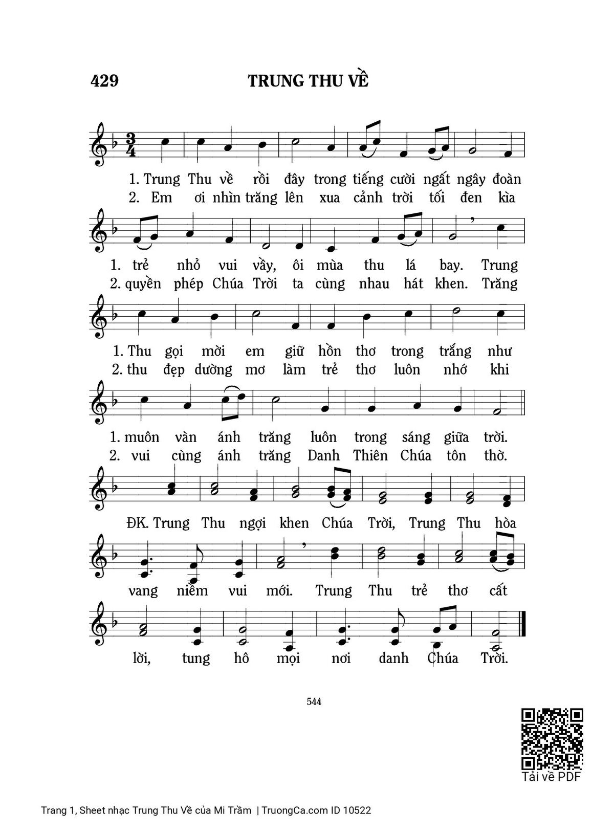 Điệp khúc. Trung Thu ngợi khen Chúa Trời, Trung Thu hòa vang niềm vui mới. Trung Thu trẻ thơ cất lời tung hô mọi nơi danh Chúa Trời.