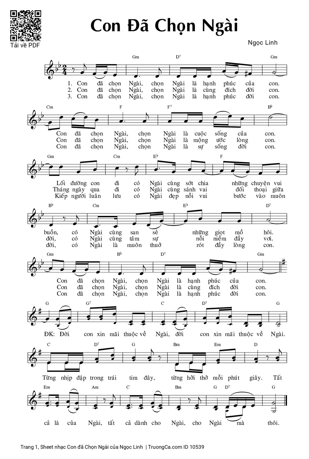 Ngọc Linh Con đã chọn Ngài chọn Ngài là hạnh phúc của con [PDF] [Sheet] [Lời H.A] [Mp4/Midi]