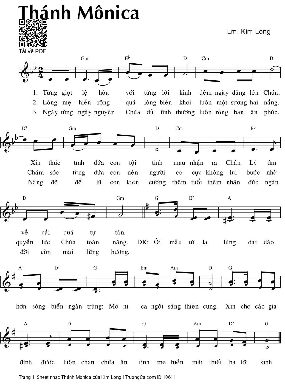 Kim Long Từng giọt lệ hòa với từng lời kinh đêm ngày dâng lên Chúa [PDF] [Sheet] [Lời H.A] [Mp4/Midi]