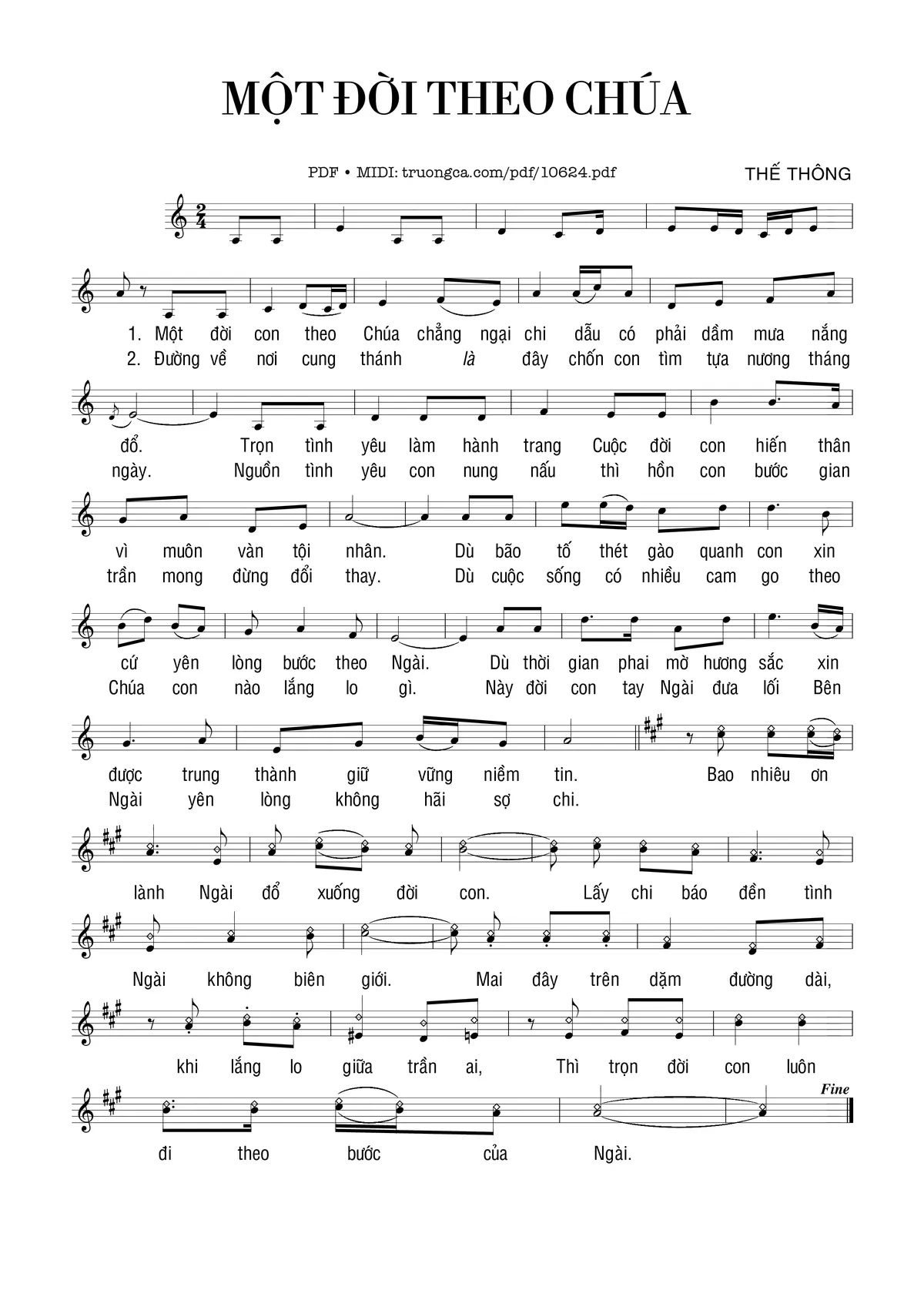 Thế Thông Một đời con theo Chúa chẳng ngại chi dẫu có phải dầm mưa nắng đổ [PDF] [Sheet] [Lời H.A] [Mp4/Midi]
