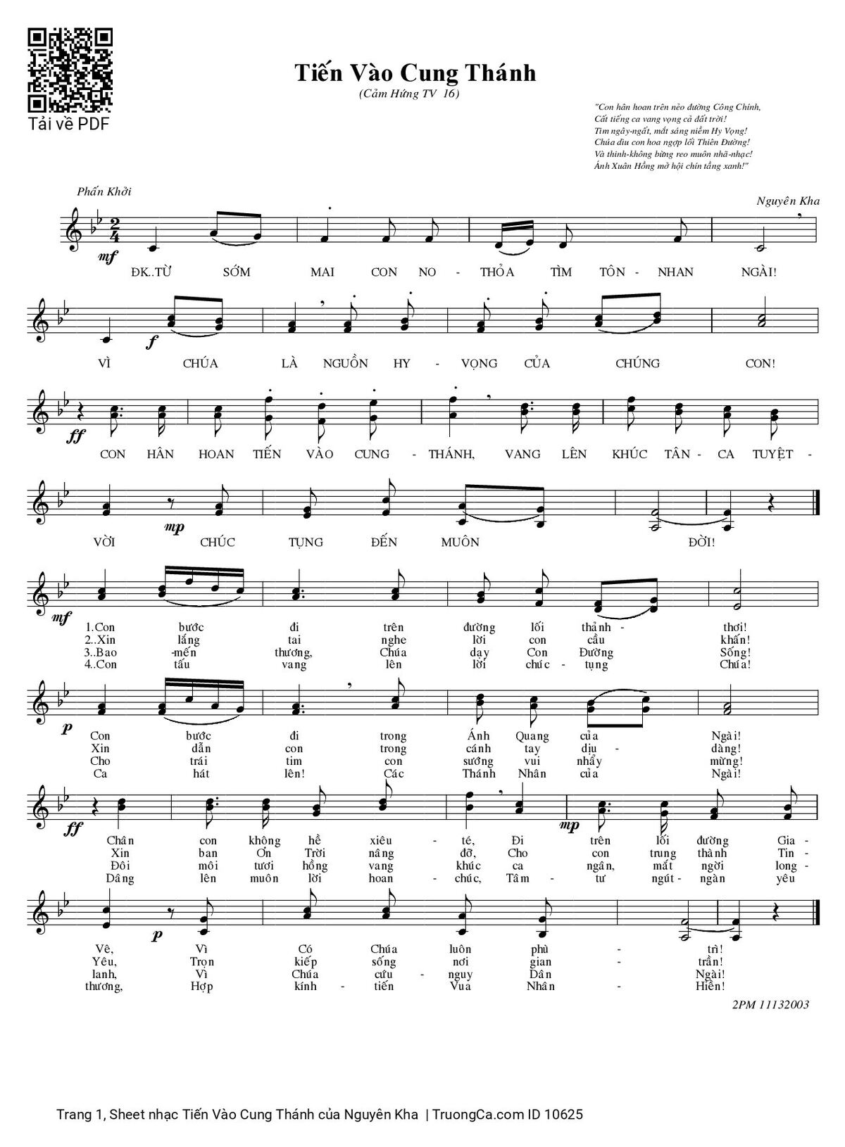 Nguyên Kha Từ sớm mai con no thỏa nhìn tôn nhan Ngài [PDF] [Sheet] [Lời H.A] [Mp4/Midi]