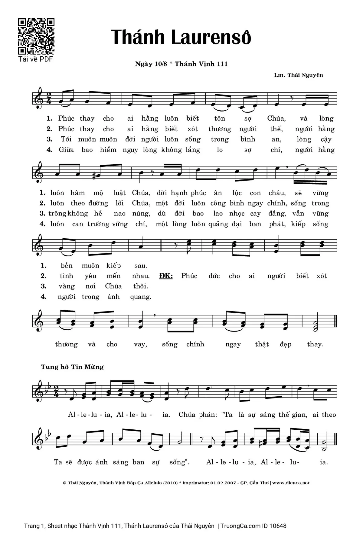Các sheet PDF tương tự Thánh Vịnh 111, Thánh Laurensô: