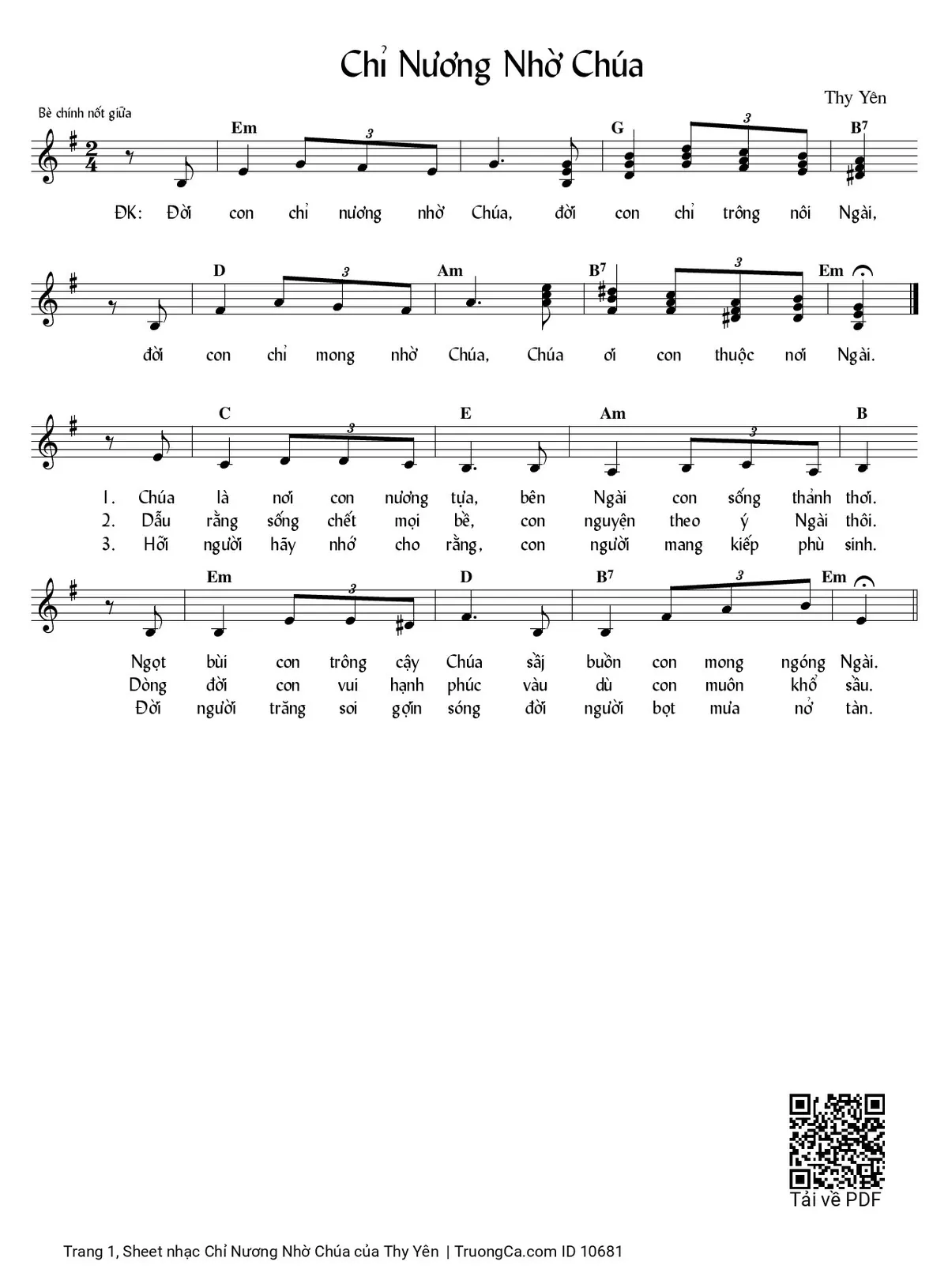 Điệp khúc: Đời con chỉ nương nhờ Chúa đời con chỉ trông nơi Ngài, đời con chỉ mong nhờ Chúa, Chúa ơi con thuộc nơi Ngài.