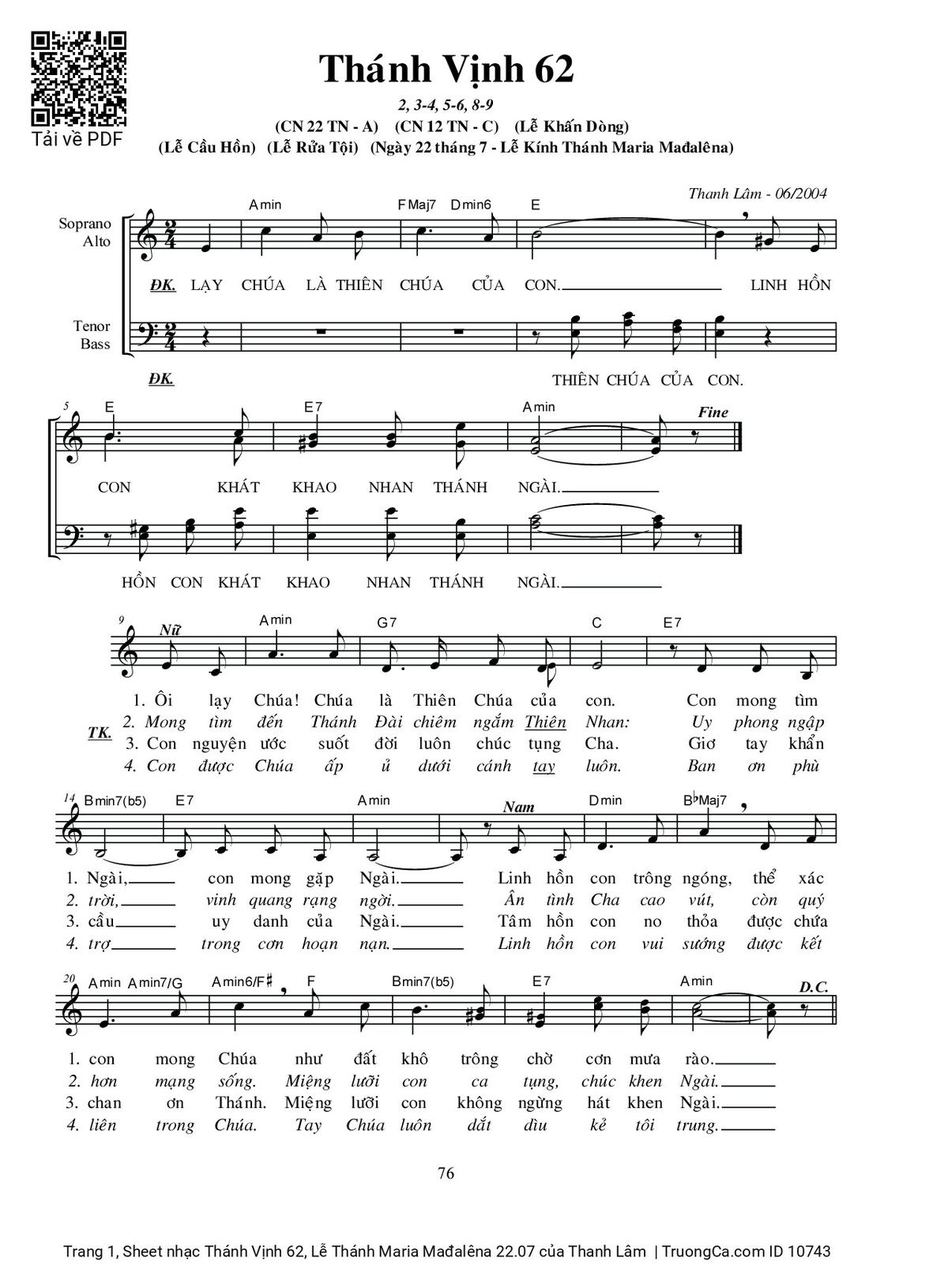Thể loại 🌾 Nhạc Thánh Ca, 🌾 Thánh Vịnh - Đáp Ca, 🌾 Thánh ca Imprimatur, 🌾 Thánh Vịnh 62