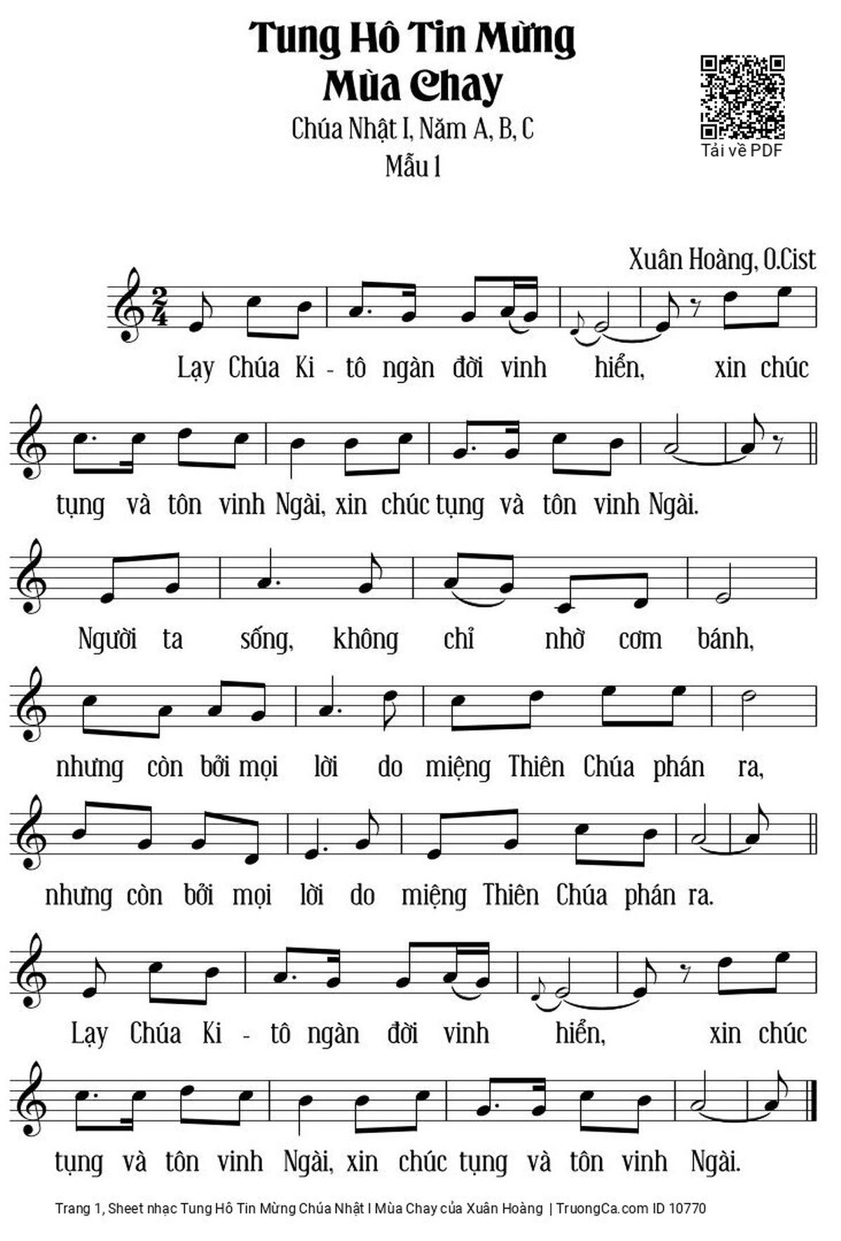 Các sheet PDF tương tự Tung Hô Tin Mừng Chúa Nhật I Mùa Chay: