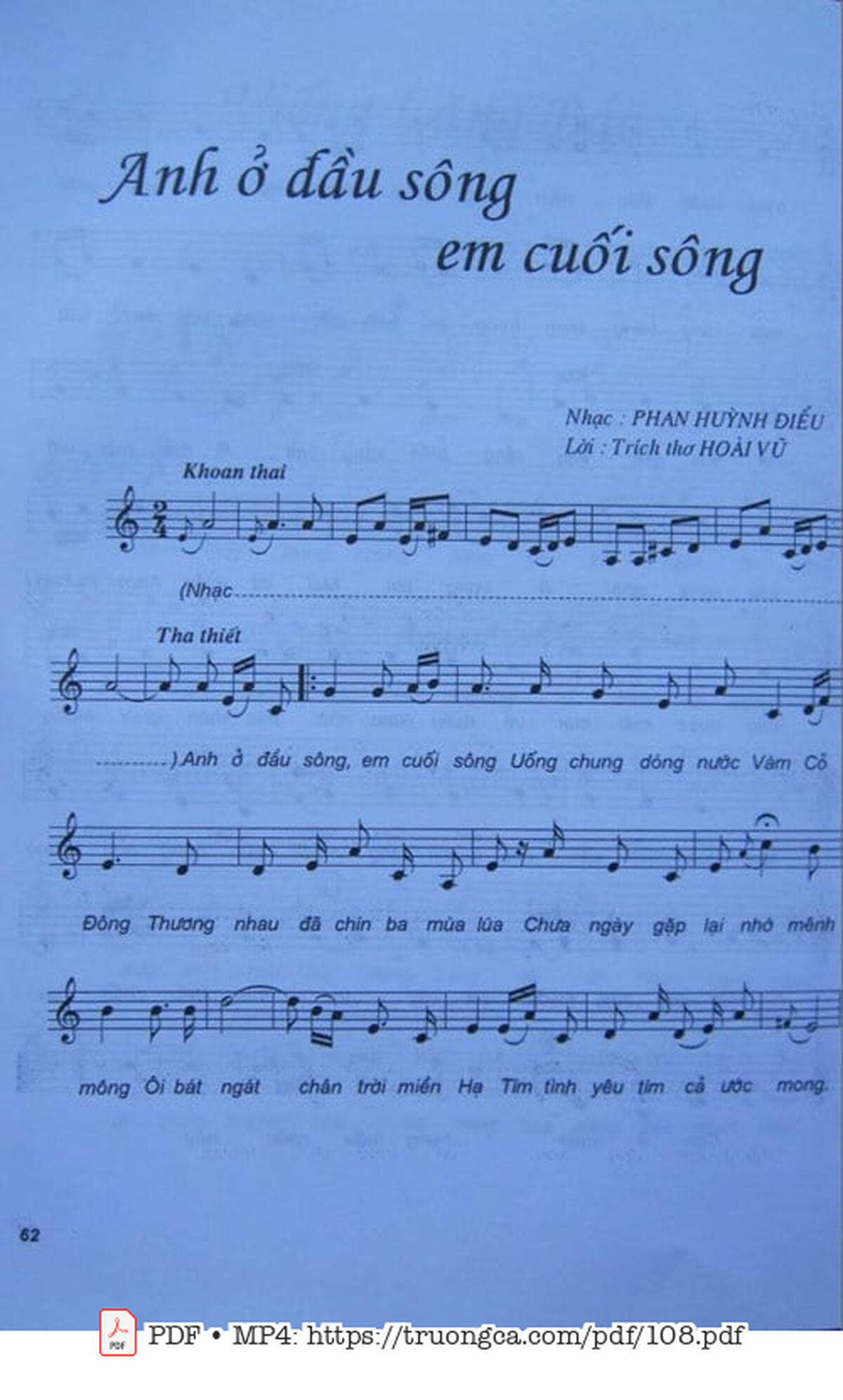 Phan Huỳnh Điểu Anh ở đầu sông em cuối sông Uống chung dòng nước Vàm Cỏ Đông [PDF] [Sheet] [Lời H.A] [Mp4/Midi]
