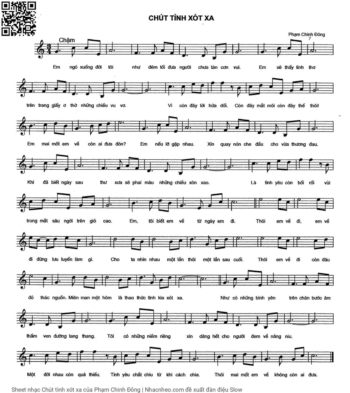 Phần nghe hát Chút tình xót xa (Phạm Chinh Đông) được nhúng từ Youtube, Musescore hoặc link ngoài và chịu sự kiểm soát bản quyền của bên thứ ba đó, vì vậy có thể bị xóa hoặc chèn quảng cáo bất kỳ lúc nào. Nếu bạn không nghe - xem được ca sĩ hát tức là đã bị Youtube hoặc Musescore kiểm soát.