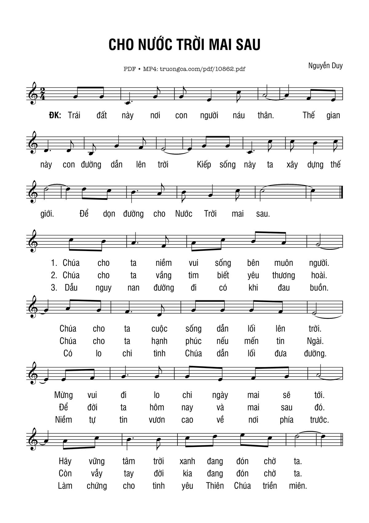 Các sheet PDF tương tự Cho Nước Trời Mai Sau: