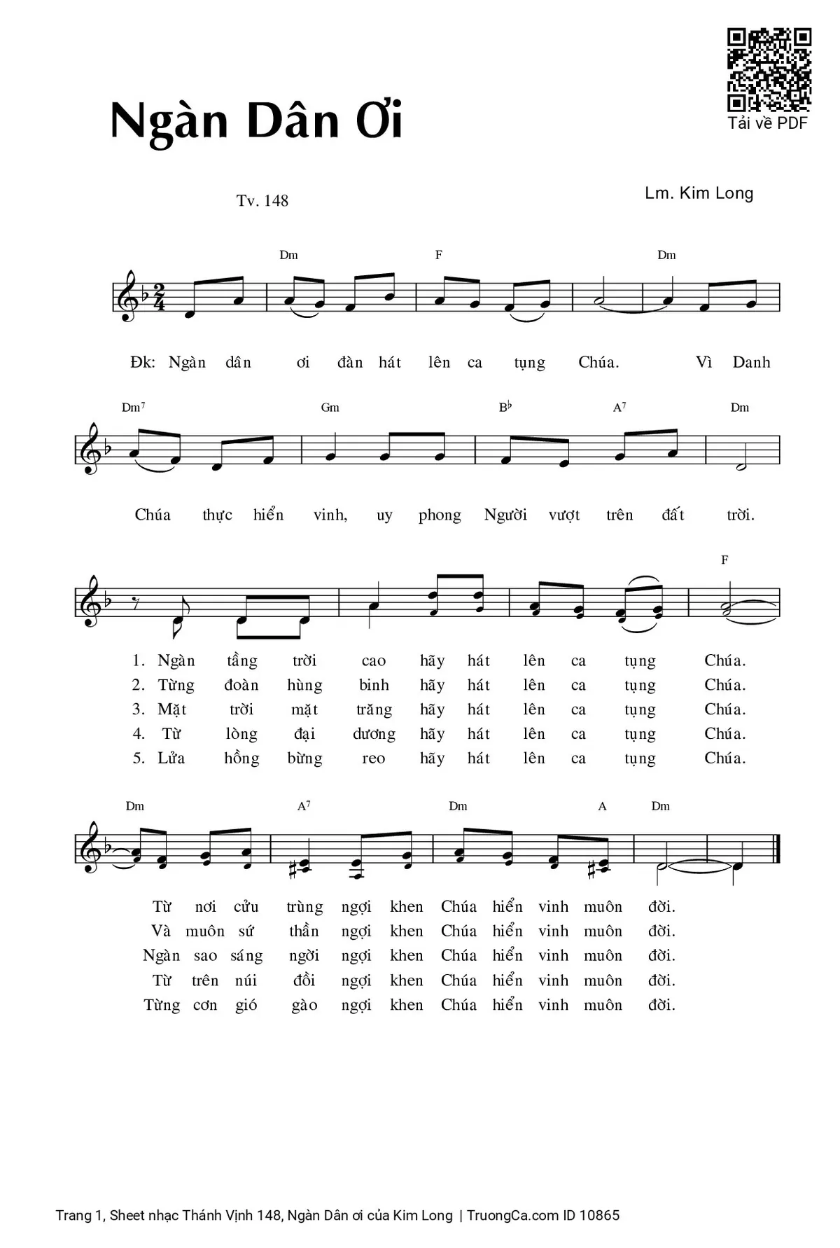 Kim Long ÐK Ngàn dân ơi đàn hát lên ca tụng Chúa [PDF] [Sheet] [Lời H.A] [Mp4/Midi]