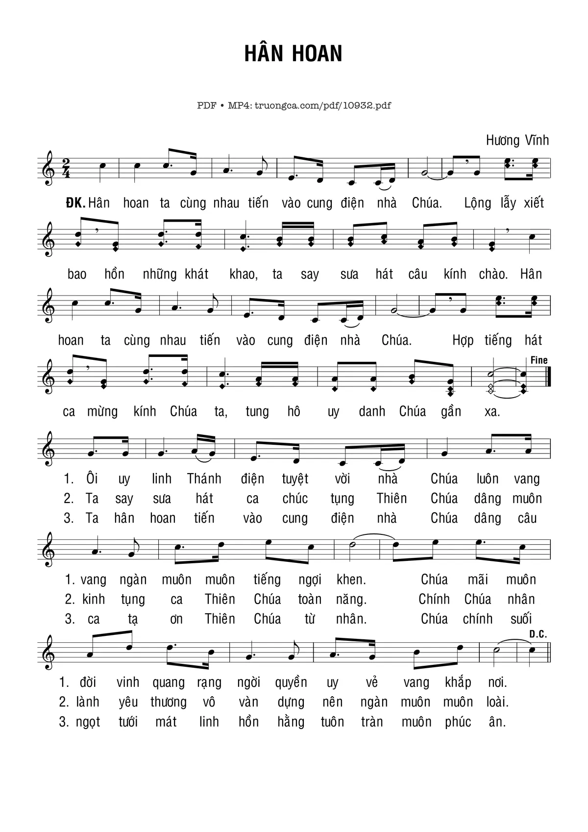 Hương Vĩnh Hân hoan ta cùng nhau tiến vào cung điện nhà Chúa [PDF] [Sheet] [Lời H.A] [Mp4/Midi]