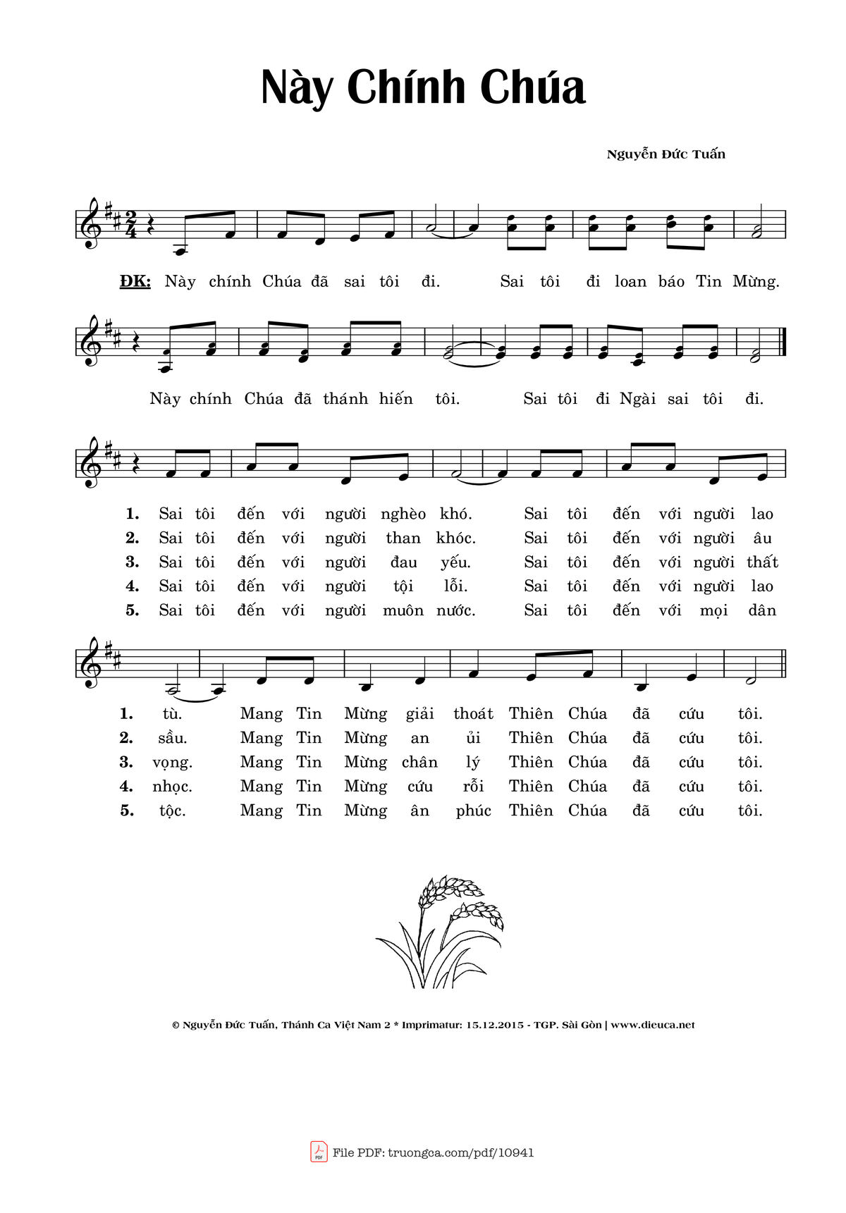 Nguyễn Đức Tuấn Này chính Chúa đã sai tôi đi Sai tôi đi loan báo Tin Mừng [PDF] [Sheet] [Lời H.A] [Mp4/Midi]