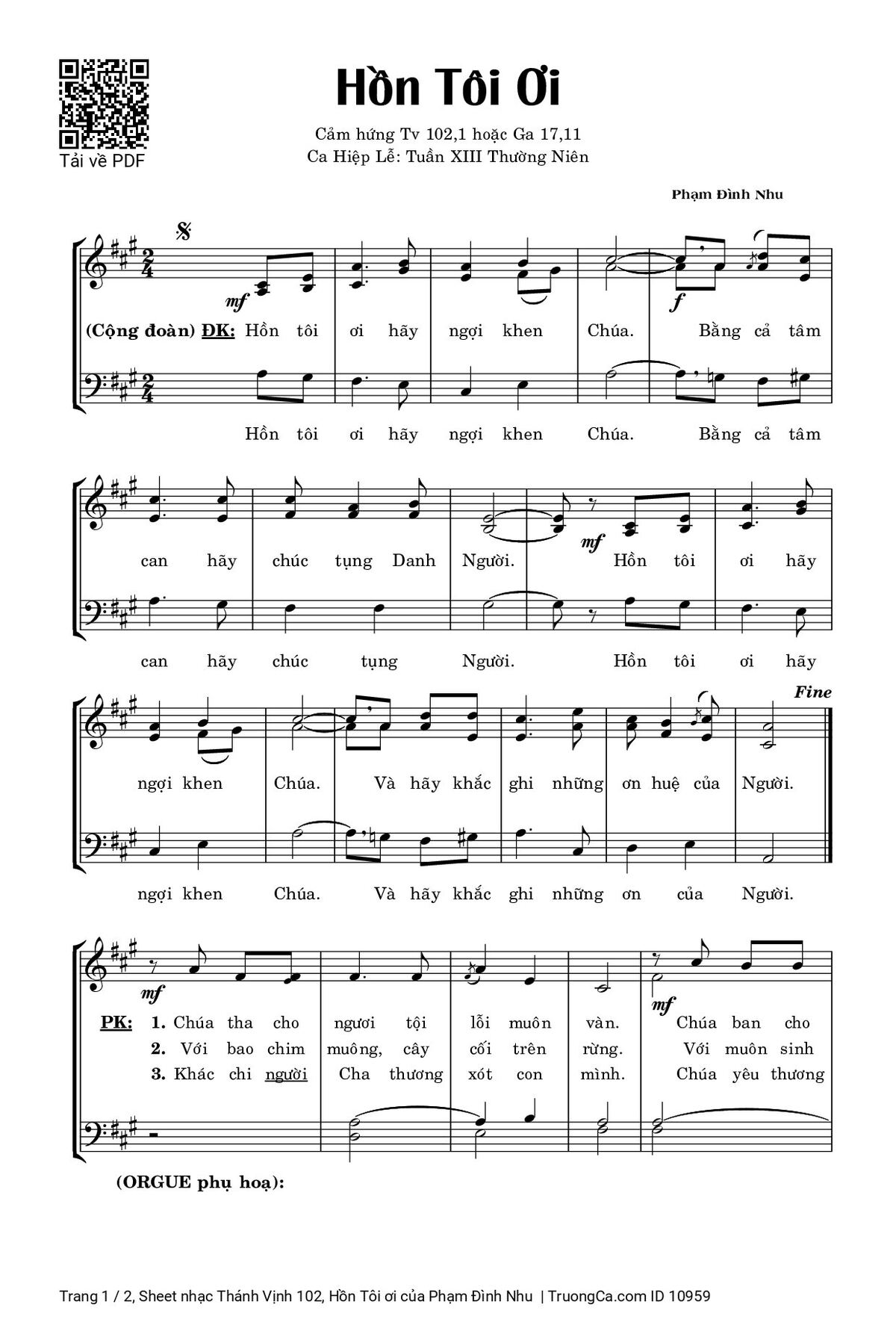 Các sheet PDF tương tự Thánh Vịnh 102, Hồn Tôi ơi:
