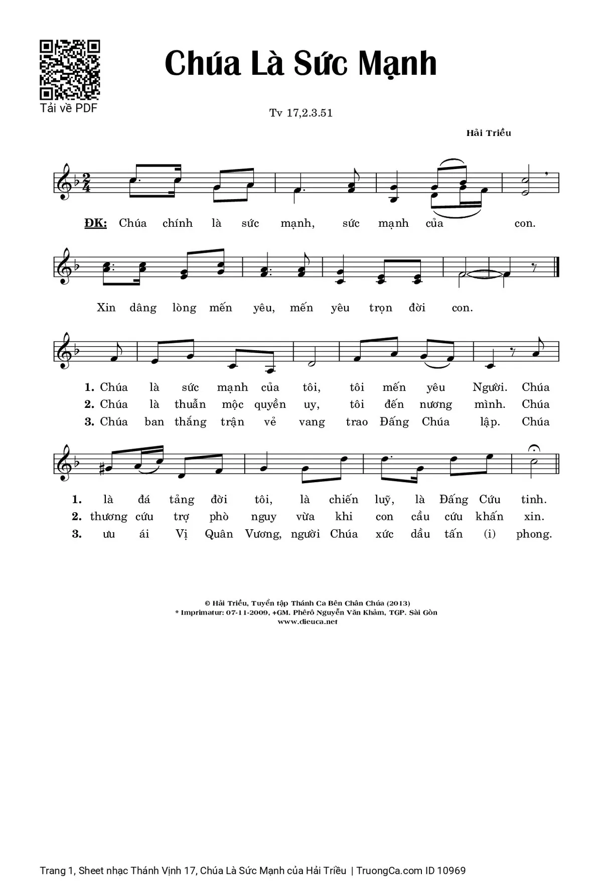 Điệp khúc: Chúa chính là sức mạnh, sức mạnh của con. Xin dâng lòng mến yêu, mến yêu trọn đời con.
