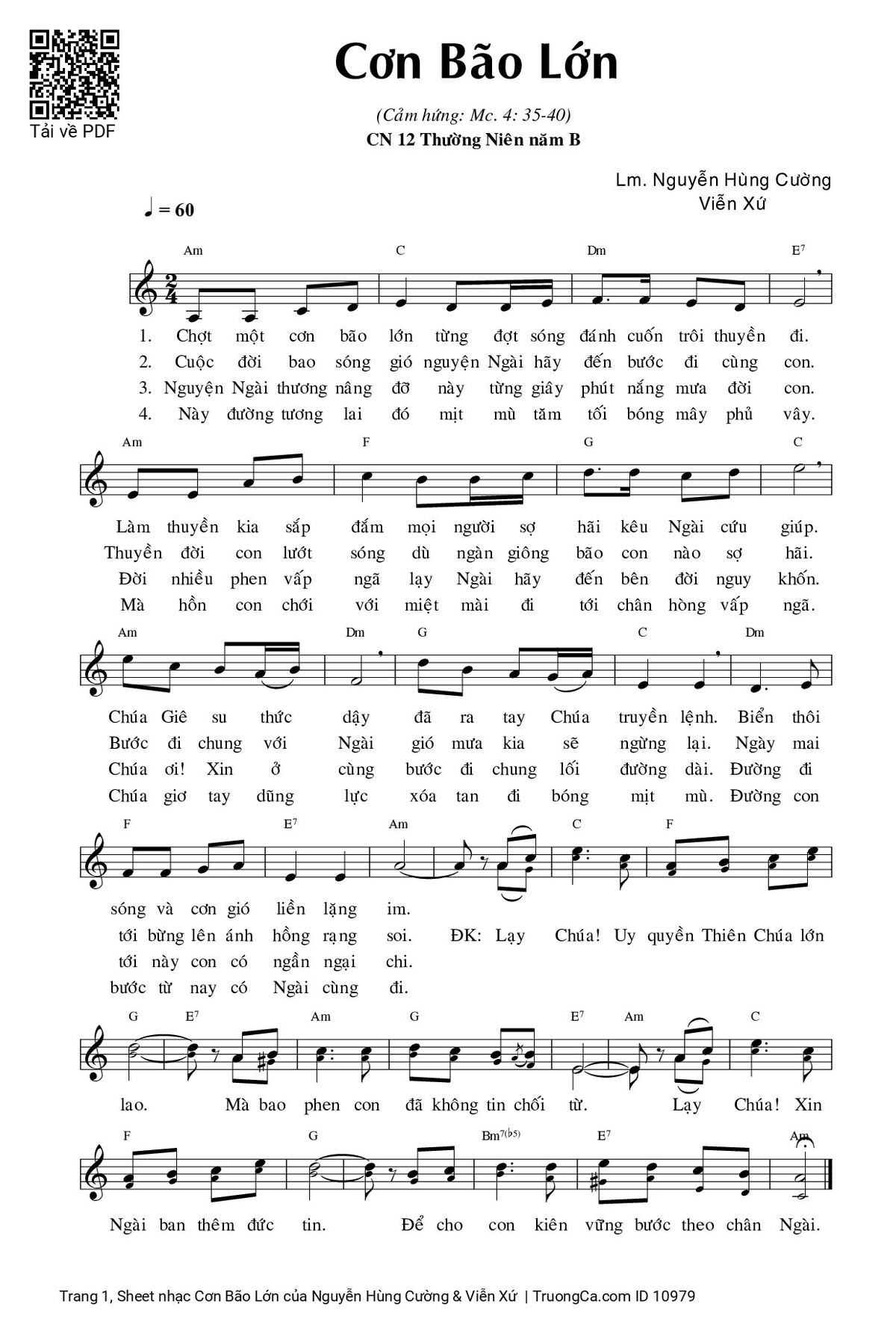1. Chợt một cơn bão lớn từng đợt sóng đánh cuốn trôi thuyền đi. Làm thuyền kia sắp đắm mọi người sợ hãi kêu Ngài cứu giúo. Chúa Giêsu thức dậy đã ra tay Chúa truyền lệnh biển thôi sóng và cơn gió liền lặng im