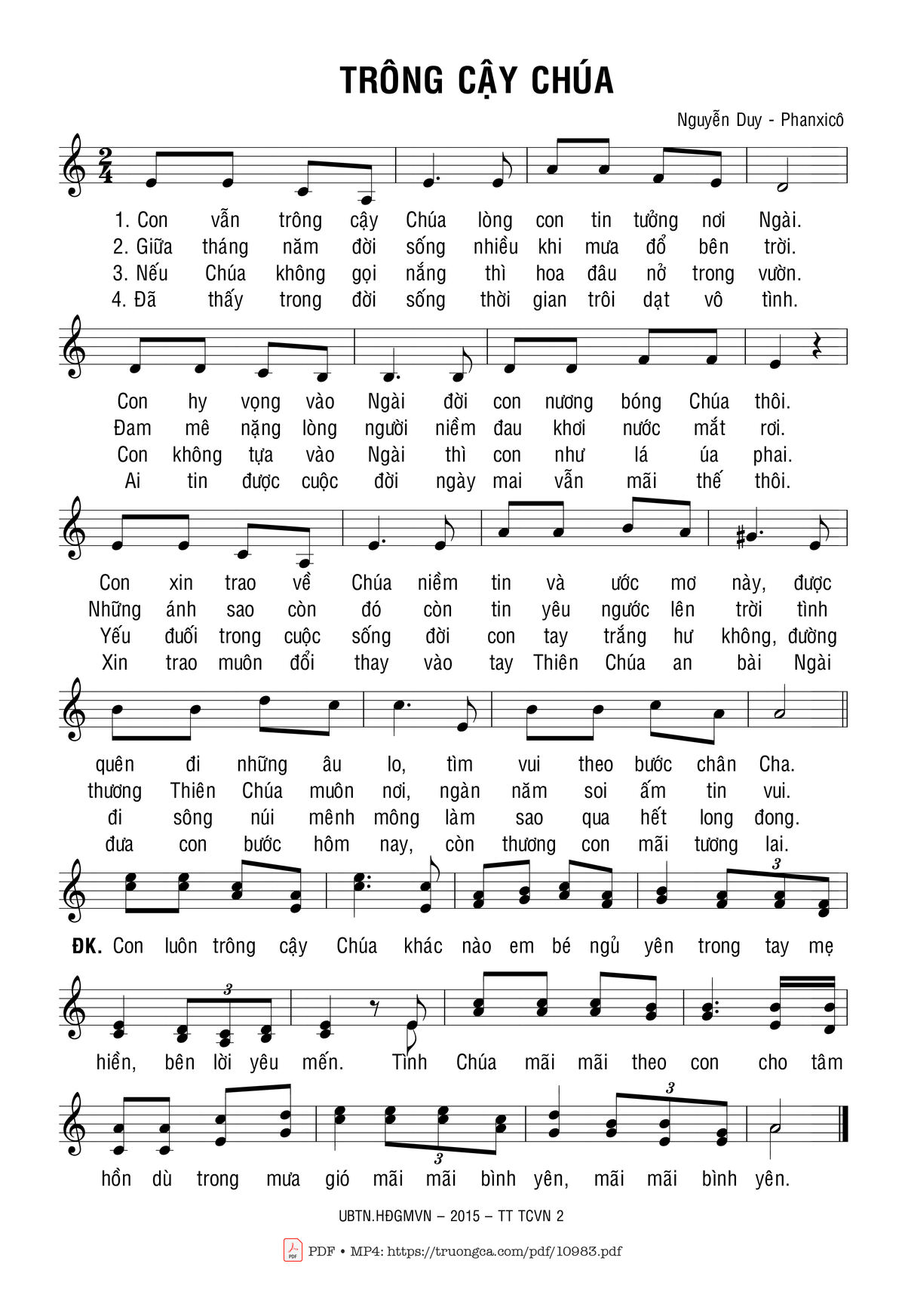 Nguyễn Duy & Phanxicô Con vẫn trông cậy Chúa lòng con tin tưởng nơi Ngài [PDF] [Sheet] [Lời H.A] [Mp4/Midi]
