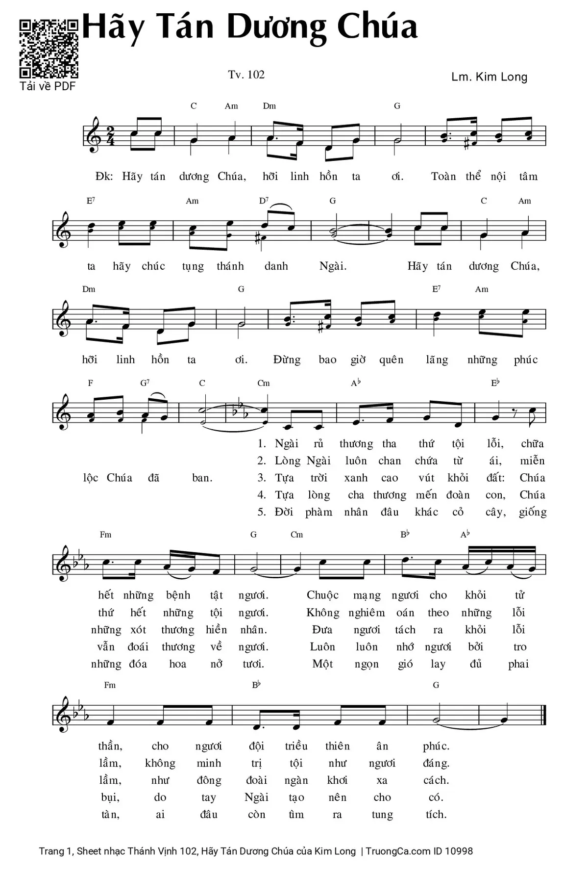 Các sheet PDF tương tự Thánh Vịnh 102, Hãy Tán Dương Chúa: