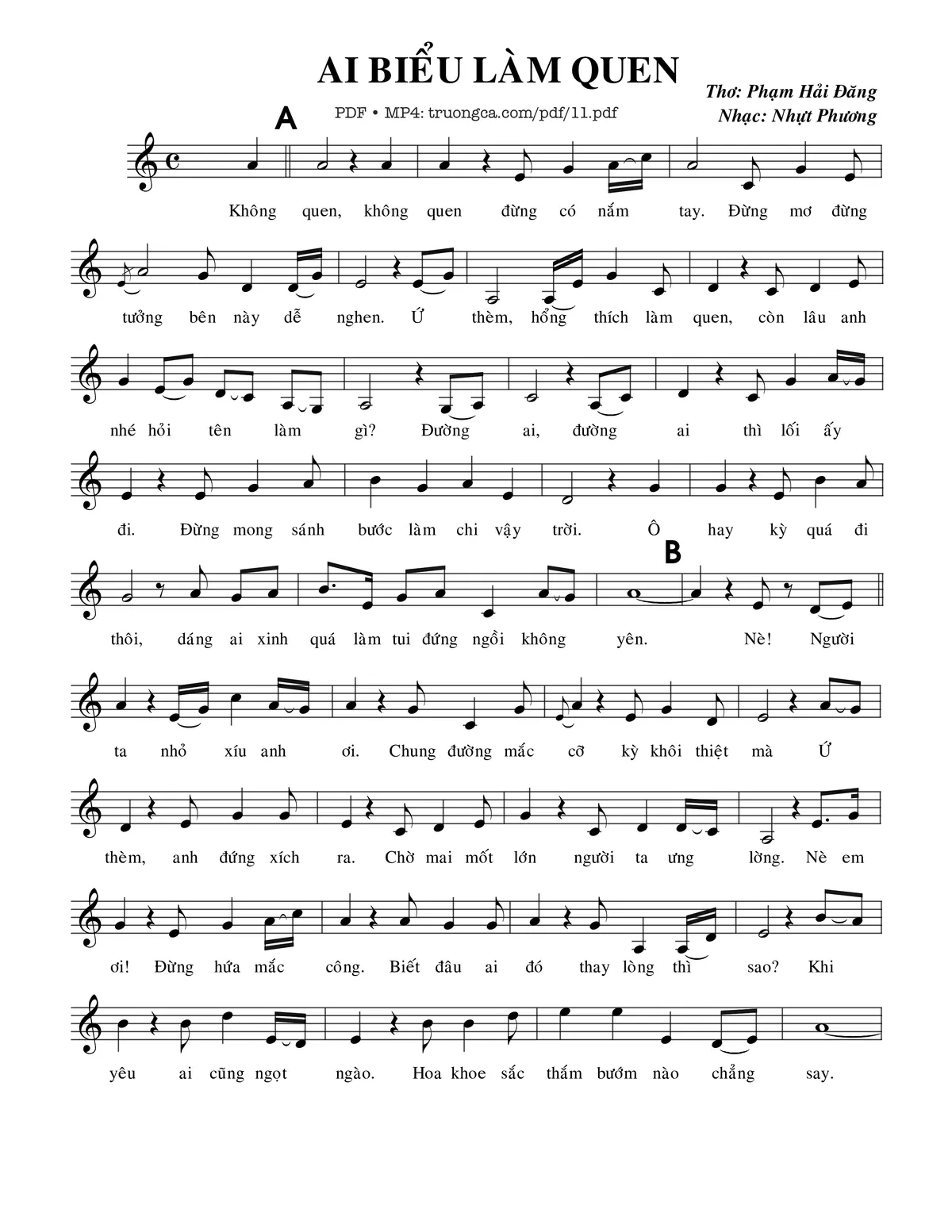 Nhựt Phương Không quen không quen đừng có nắm tay [PDF] [Sheet] [Lời H.A] [Mp4/Midi]