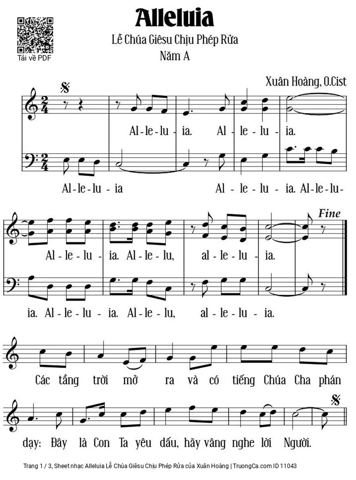 Các sheet PDF tương tự Alleluia Lễ Chúa Giêsu Chịu Phép Rửa: