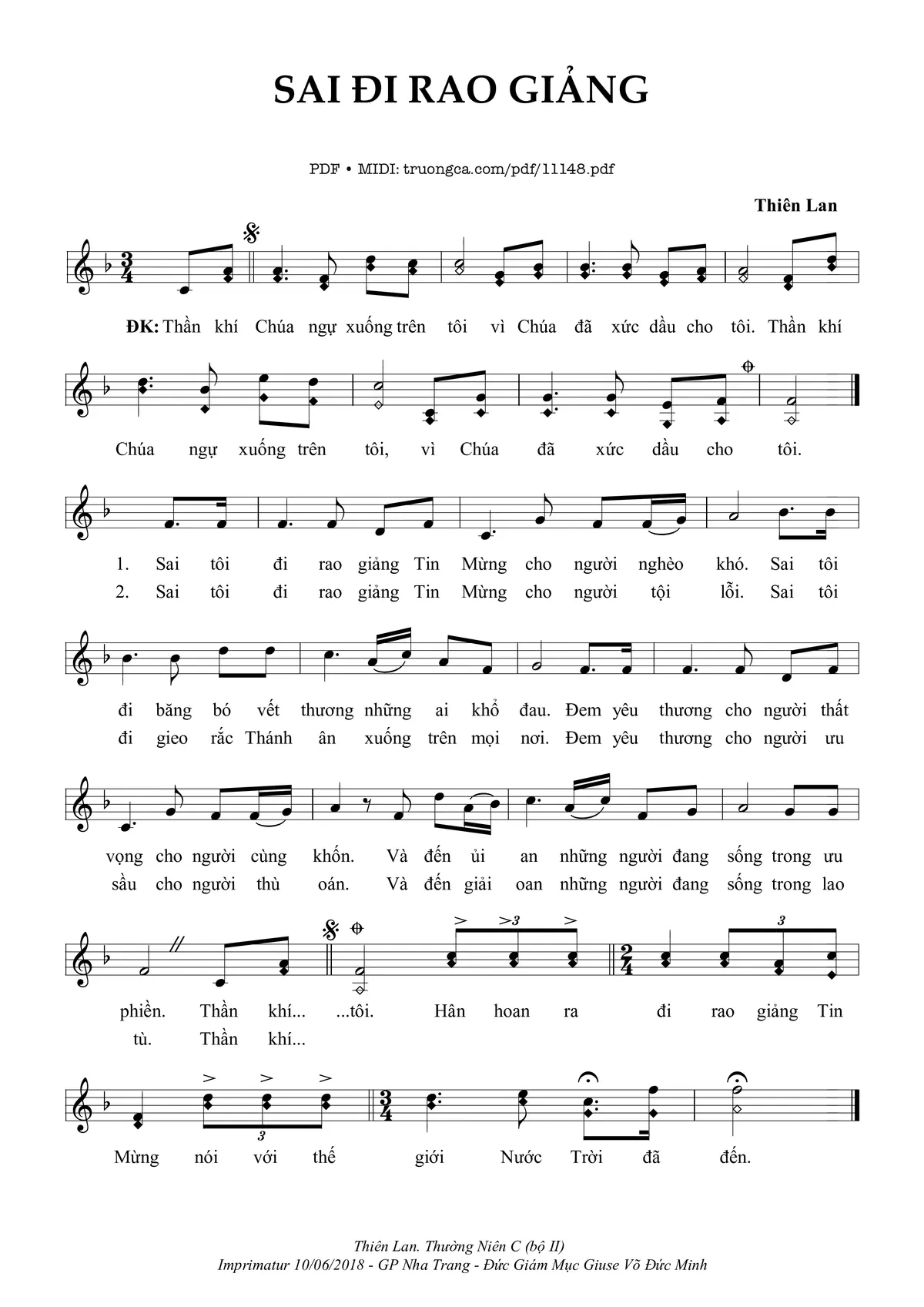 Thiên Lan Thần Khí Chúa ngự xuống trên tôi vì Chúa đã xức dầu cho tôi [PDF] [Sheet] [Lời H.A] [Mp4/Midi]