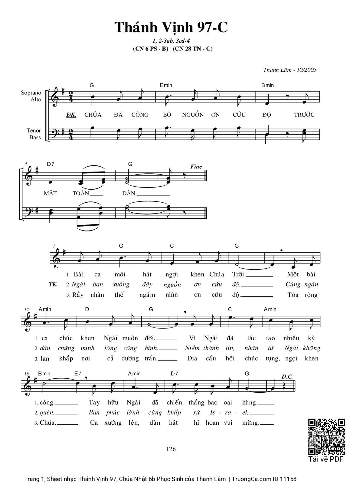 Thanh Lâm Chúa đã công bố nguồn ơn cứu độ trước mặt toàn dân [PDF] [Sheet] [Lời H.A] [Mp4/Midi]