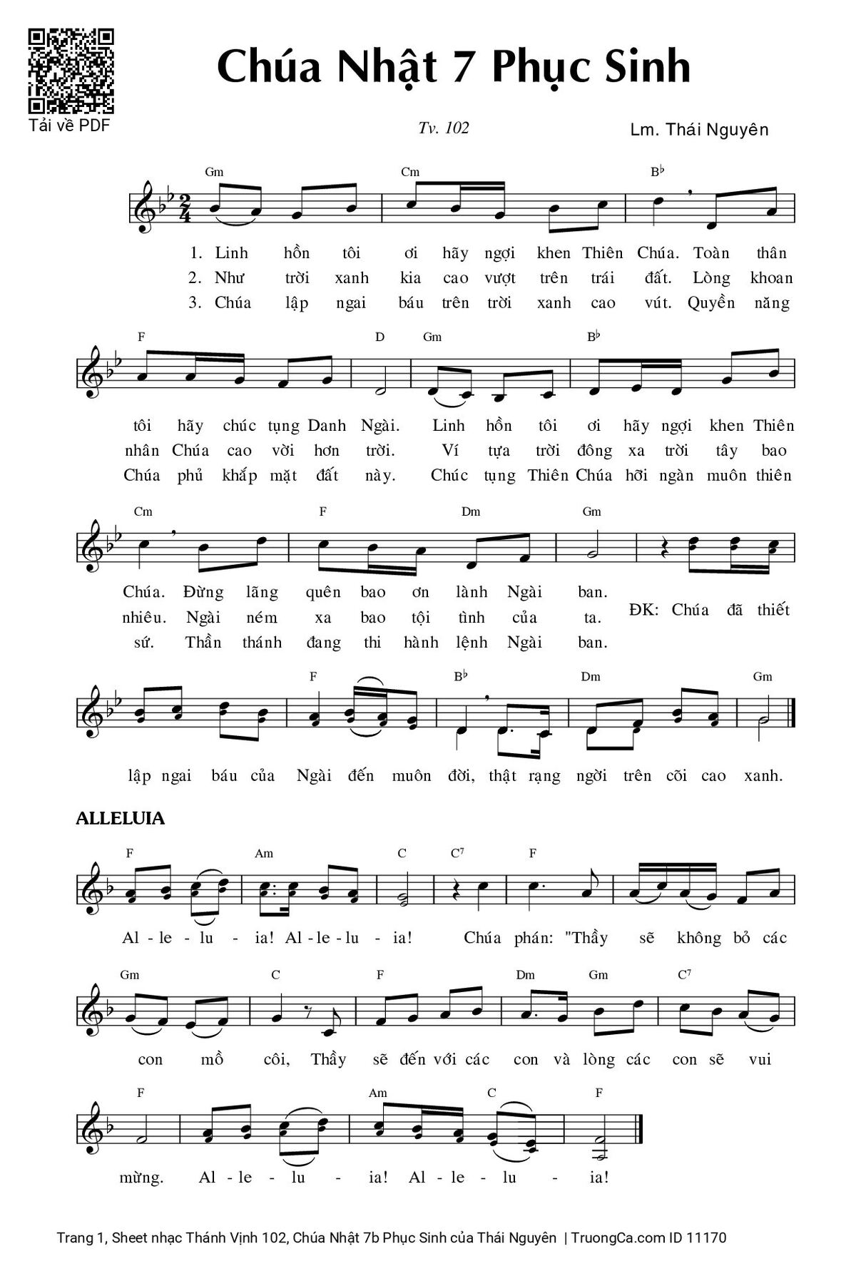 Thái Nguyên Linh hồn tôi ơi hãy ngợi khen Thiên Chúa [PDF] [Sheet] [Lời H.A] [Mp4/Midi]