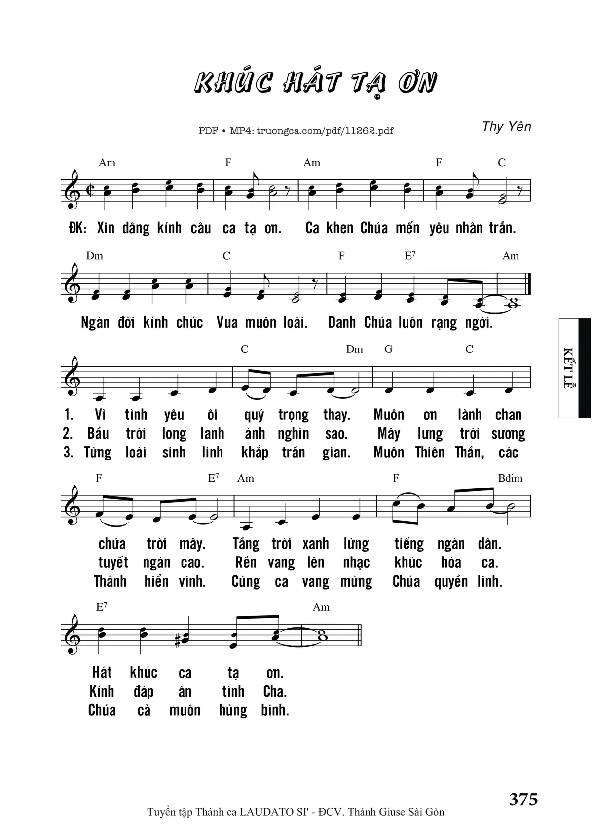 Thy Yên Xin dâng kính câu ca tạ ơn Ca khen Chúa mến yêu nhân trần [PDF] [Sheet] [Lời H.A] [Mp4/Midi]