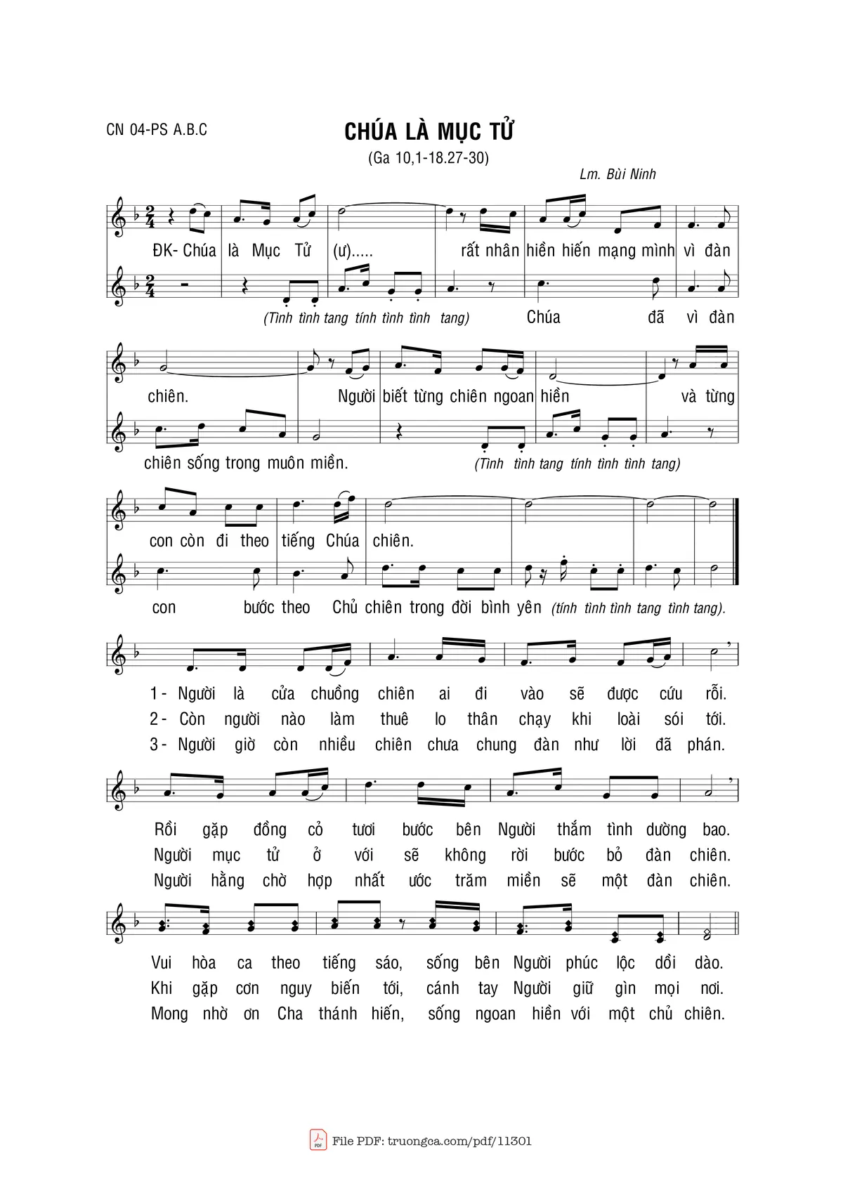 Bùi Ninh Chúa là Mục Tử rất nhân hiền hiến mạng mình vì đàn chiên [PDF] [Sheet] [Lời H.A] [Mp4/Midi]