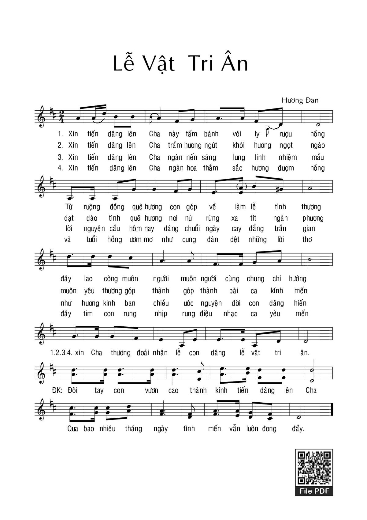 Hương Đan Xin tiến dâng lên Cha này tấm bánh với ly rượu nồng [PDF] [Sheet] [Lời H.A] [Mp4/Midi]