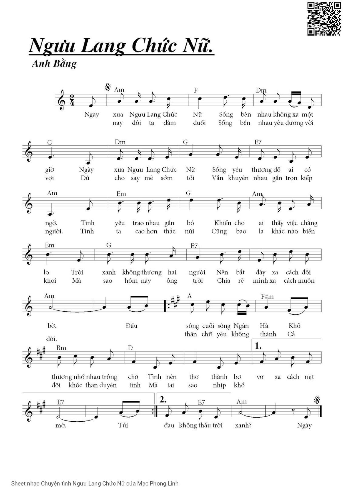 Mạc Phong Linh Ngày xưa Ngưu Lang Chức Nữ Sống bên nhau không xa một giờ [PDF] [Sheet] [Lời H.A] [Lời bình - giai thoại]