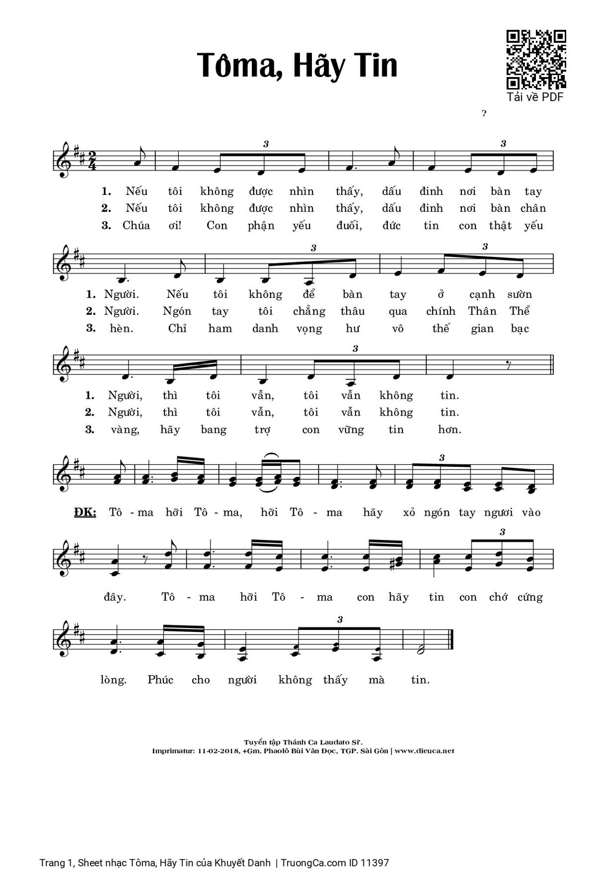 Các sheet PDF tương tự Tôma, Hãy Tin: