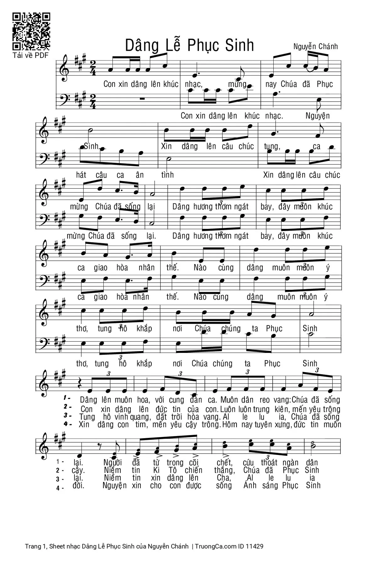 Nguyễn Chánh Con xin dâng lên khúc nhạc mừng nay Chúa đã phục sinh [PDF] [Sheet] [Lời H.A] [Mp4/Midi]