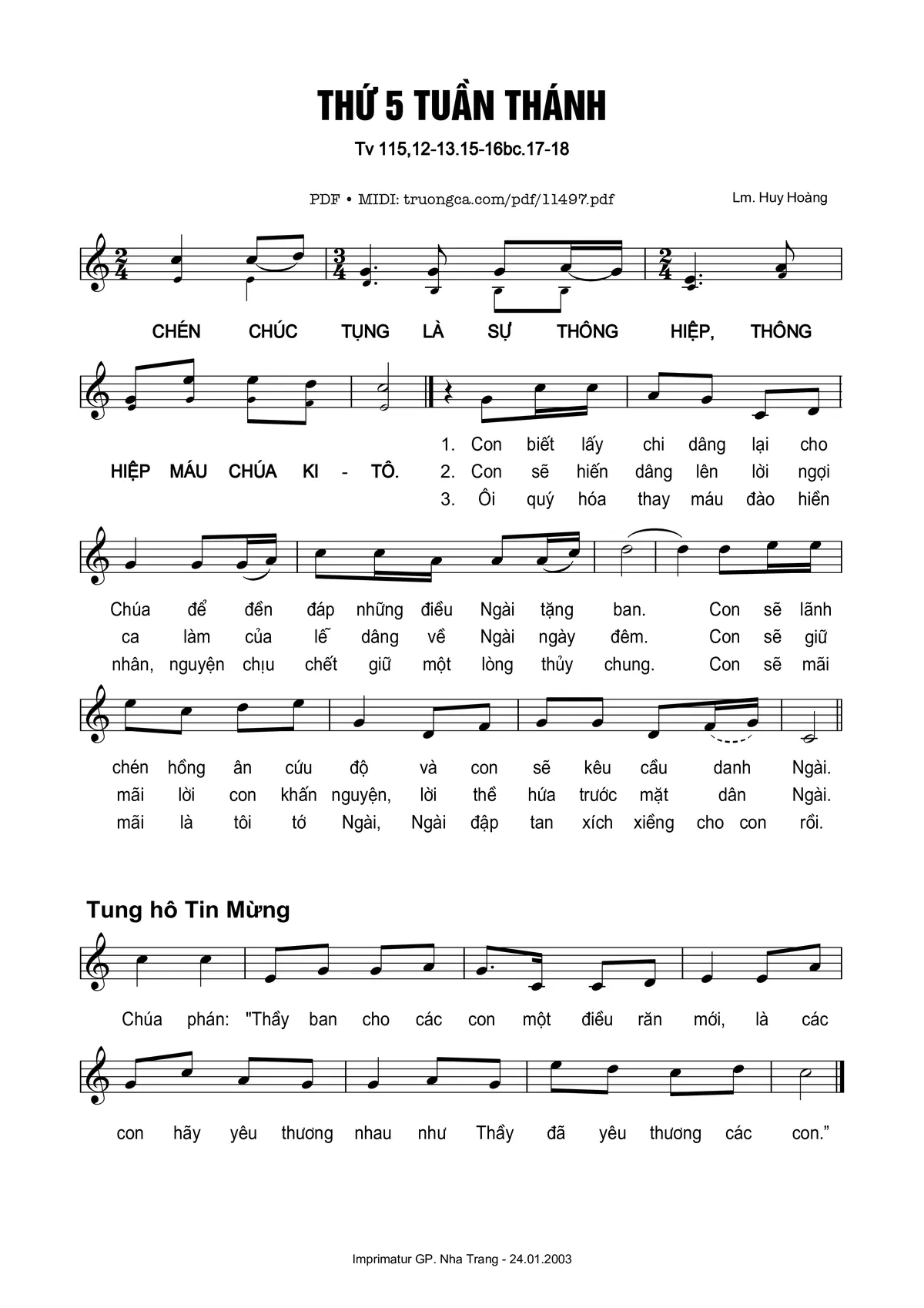 Huy Hoàng Chén chúc tụng là sự thông hiệp thông hiệp Máu Chúa Kitô [PDF] [Sheet] [Lời H.A] [Mp4/Midi]