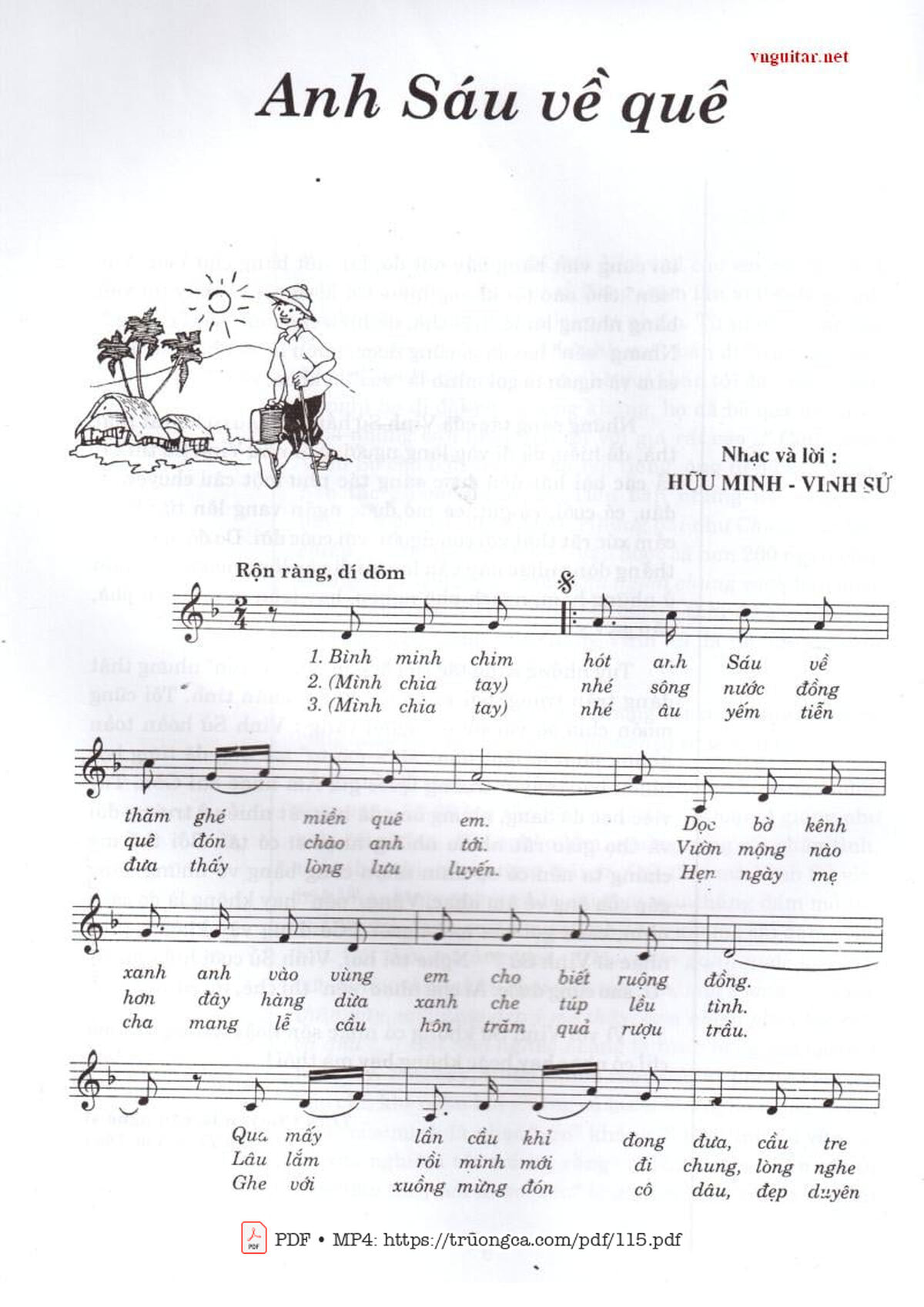 Hữu Minh Bình minh nắng sớm anh Sáu về thăm ghé miền quê em [PDF] [Sheet] [Lời H.A] [Mp4/Midi]