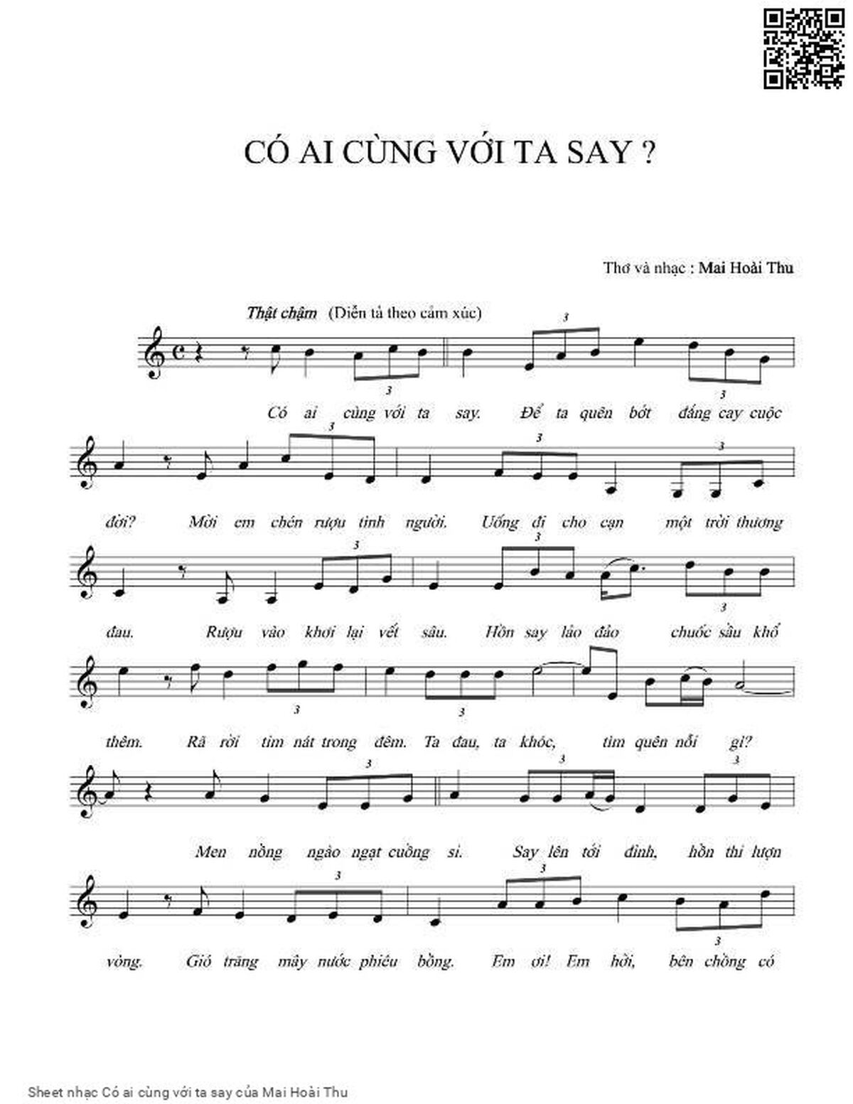 Mai Hoài Thu Có ai cùng với ta say Để ta quên bớt đắng cay cuộc đời [PDF] [Sheet] [Lời H.A] [Mp4/Midi]