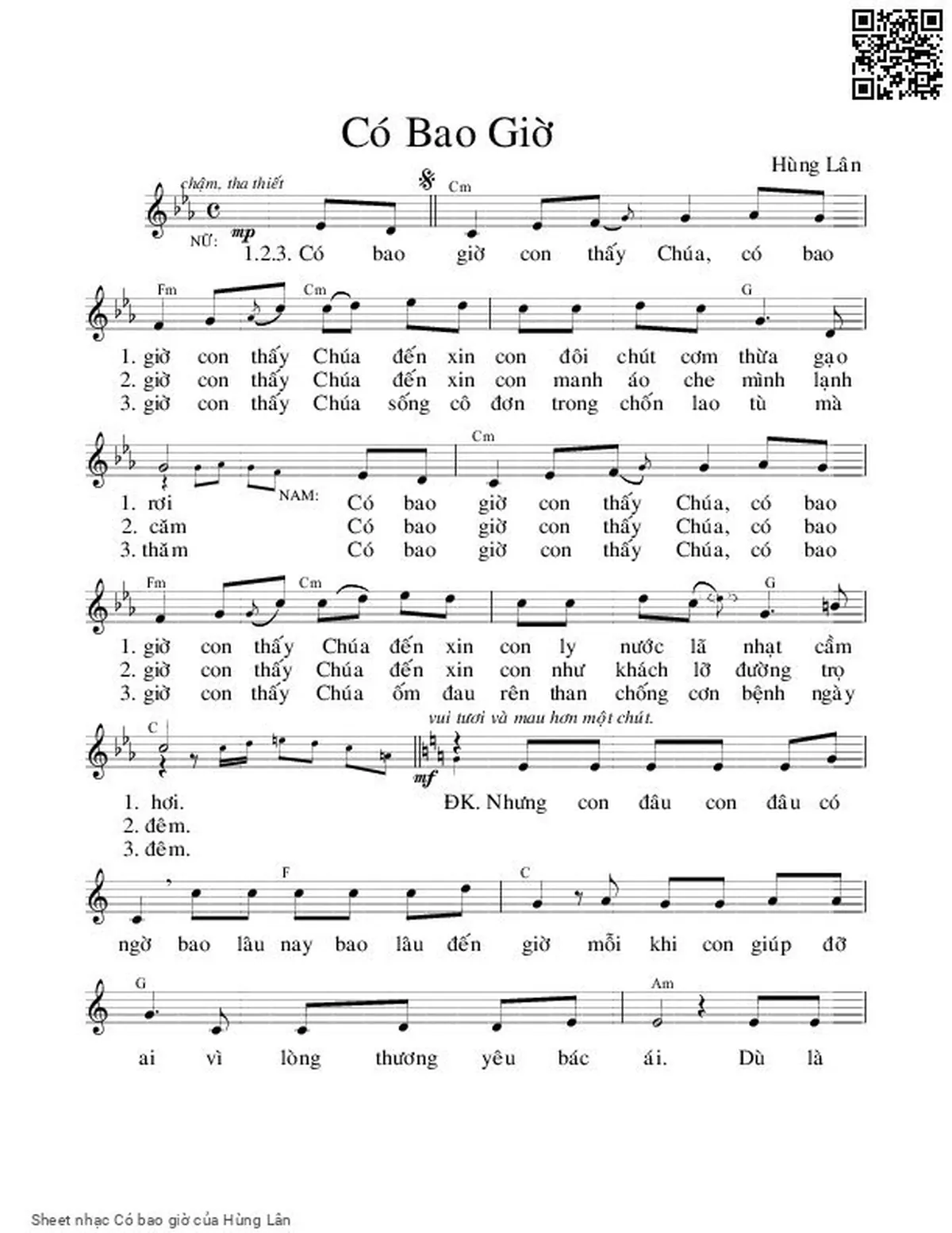 Hùng Lân Có bao giờ con thấy Chúa [PDF] [Sheet] [Lời H.A] [Mp4/Midi]