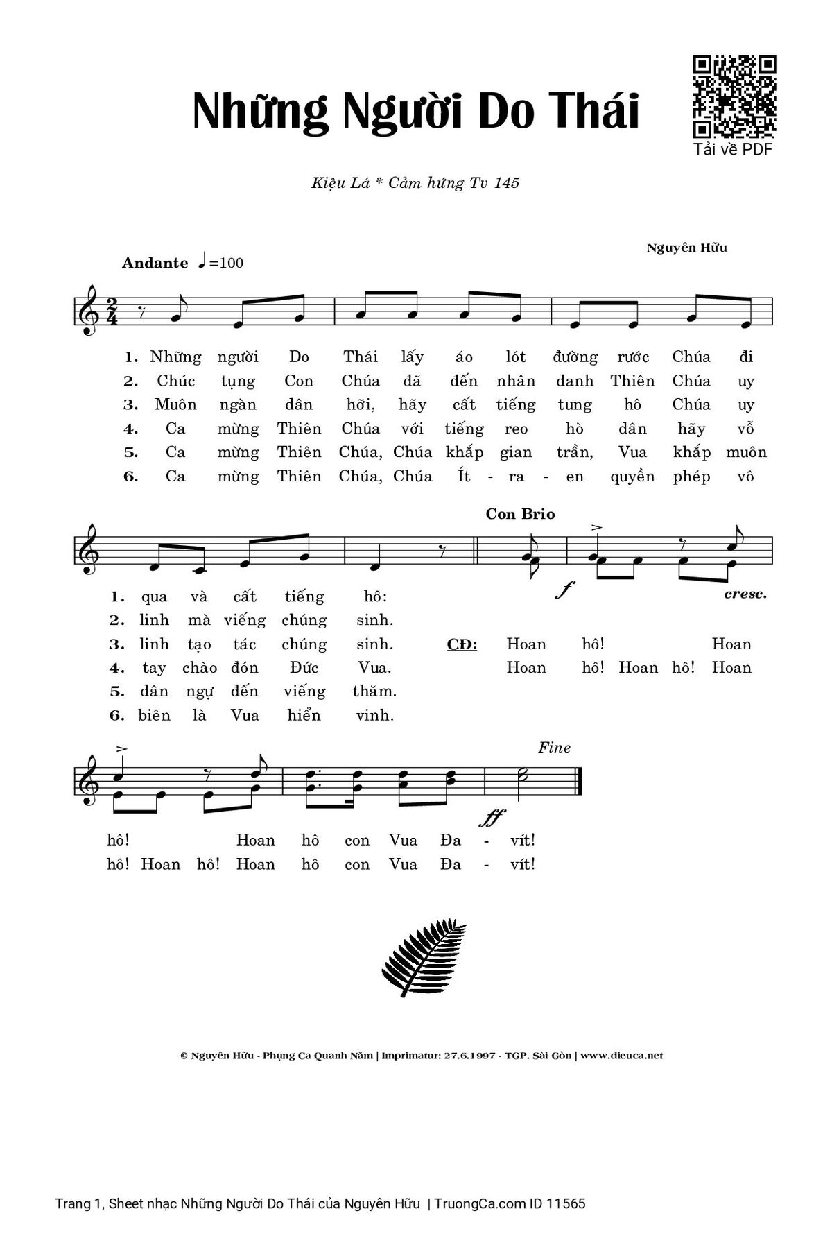 Chọn nút dấu + để tăng tông lên nửa cung, nút dấu - để giảm tông xuống nửa cung. Rê chuột vào hợp âm để xem các thế bấm hợp âm của bài hát Những Người Do Thái.